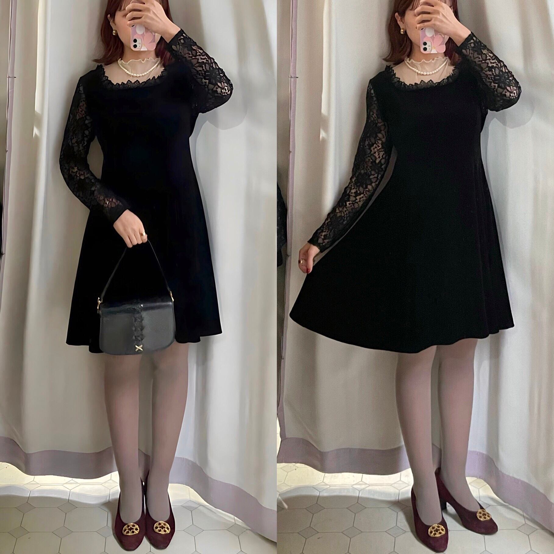 ブラックのベロアにレースの袖がドレッシーな ATSUKI ONISHI のワンピース