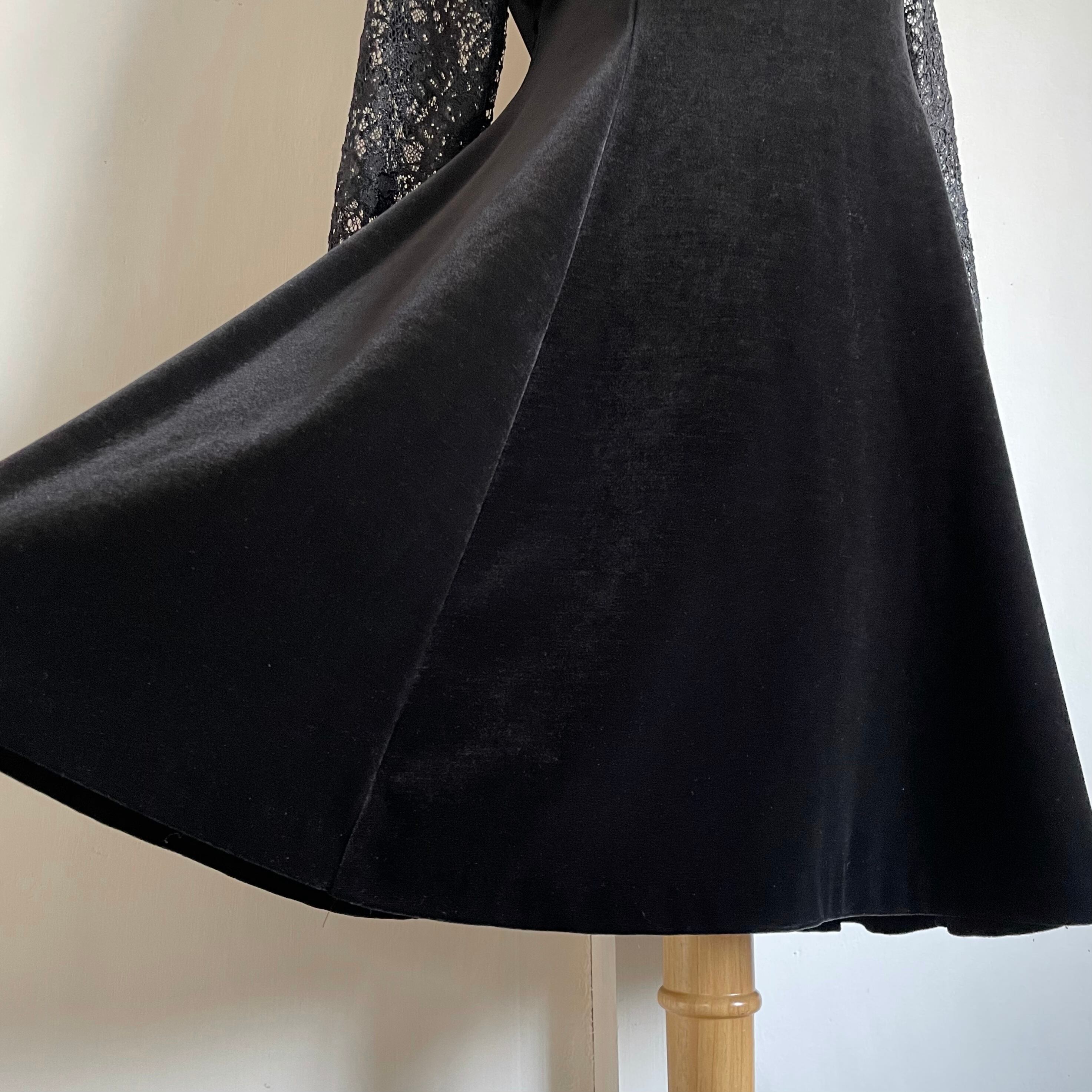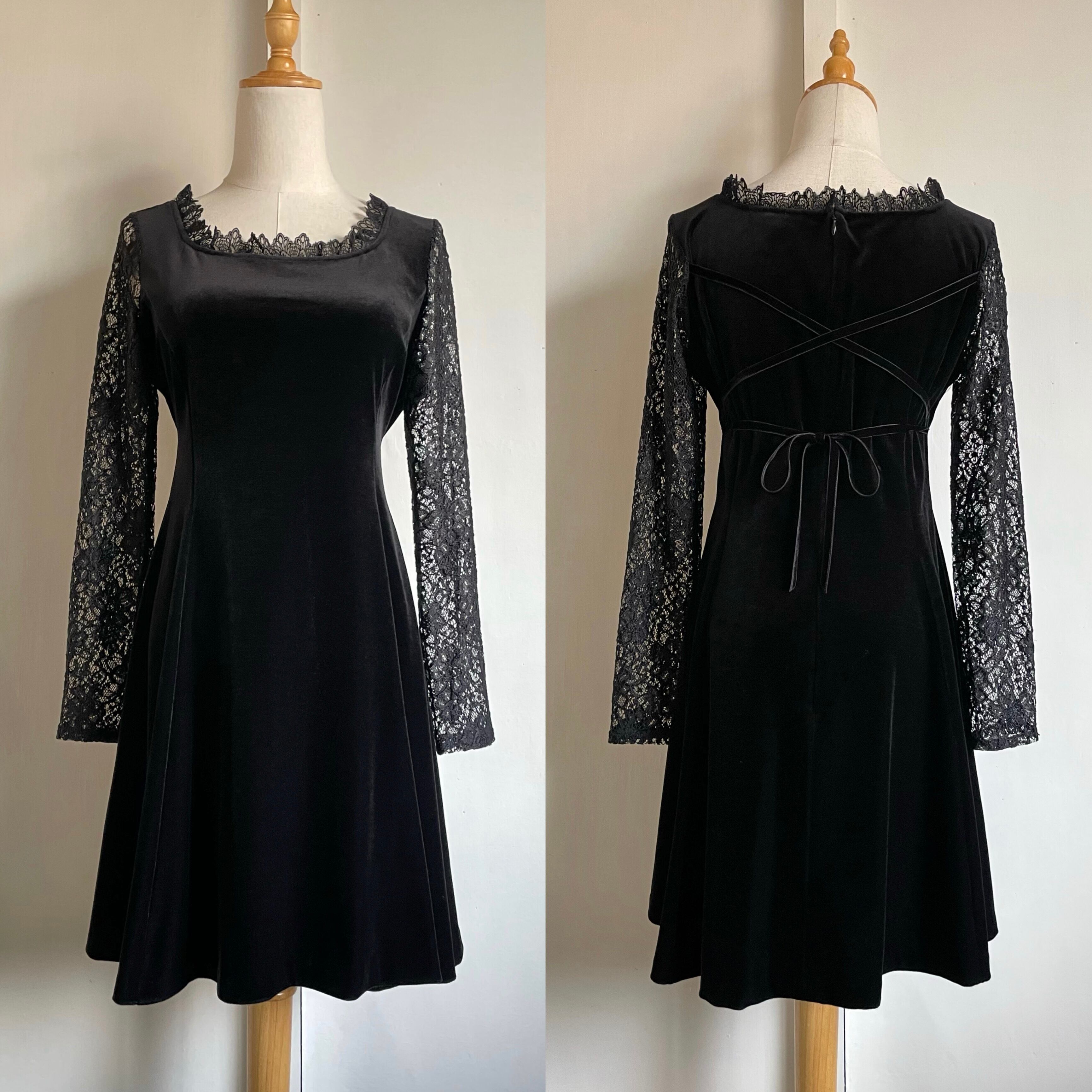 lace sleeve velor mini dress〈レトロ古着 レーススリーブ ベロア ミニワンピース ATSUKI ONISHI アツキオオニシ 黒〉