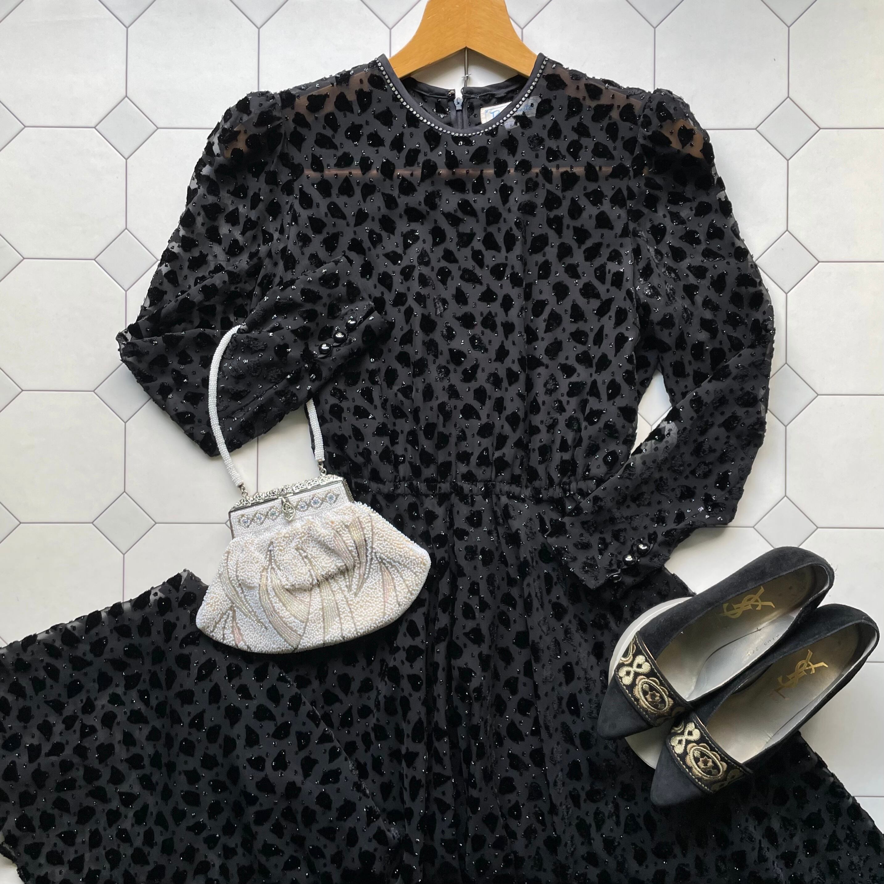 glitter jacquard black dress〈レトロ古着 ラメジャガード ブラックドレス ワンピース 黒〉