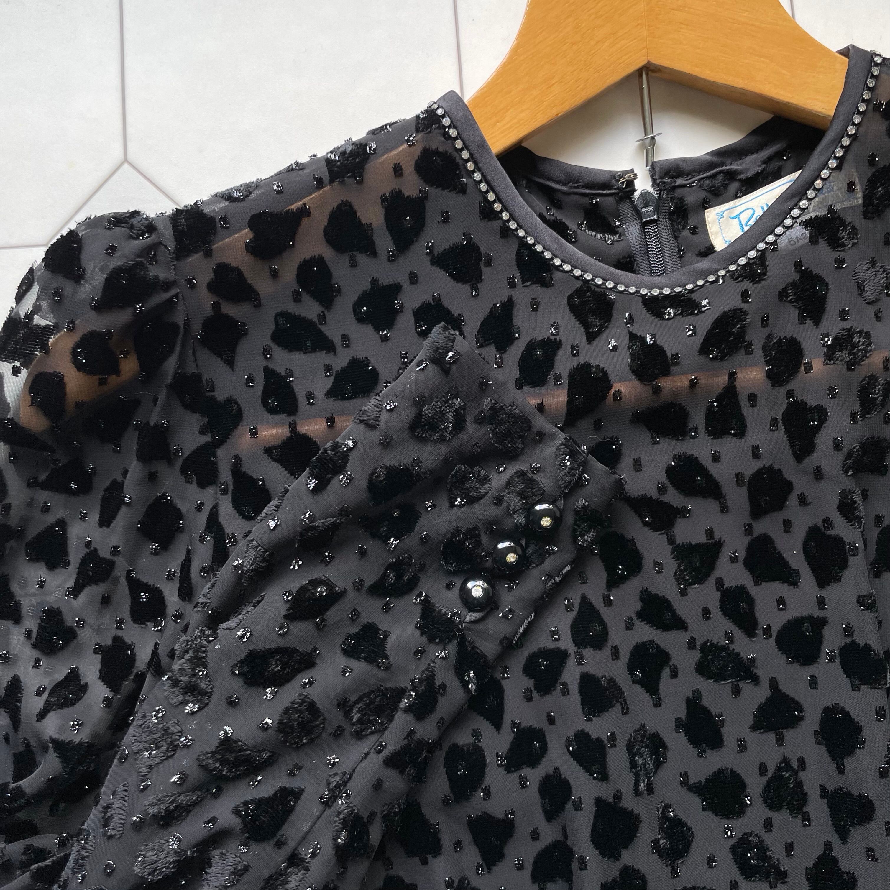シアー素材にベロアのような起毛感、さらにラメ糸が組み合わせられたとても贅沢なテキスタイルの一点