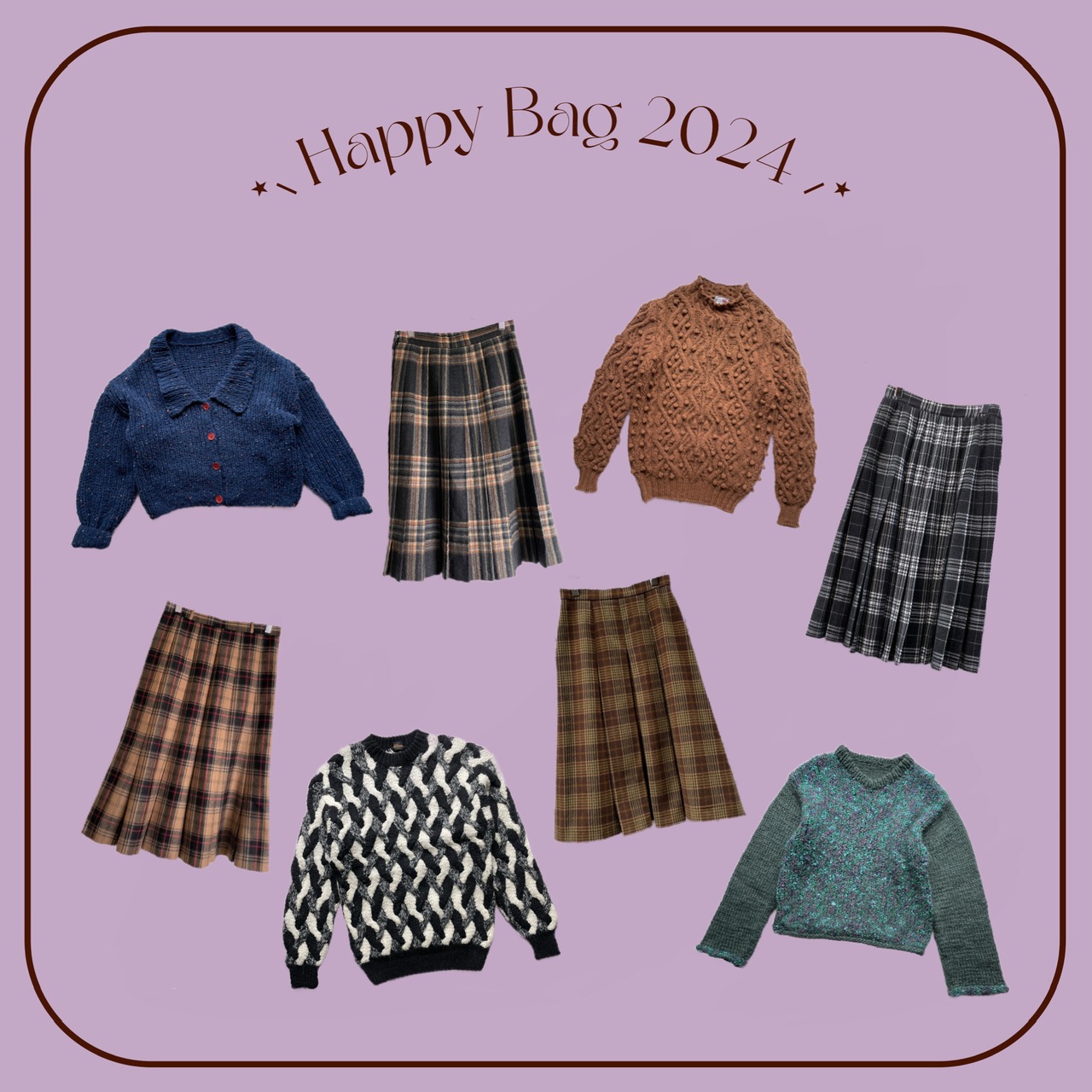 【ラスト1点】 Happy Bag 2024 - monotone plaid wool skirt -【レトロ古着 福袋】