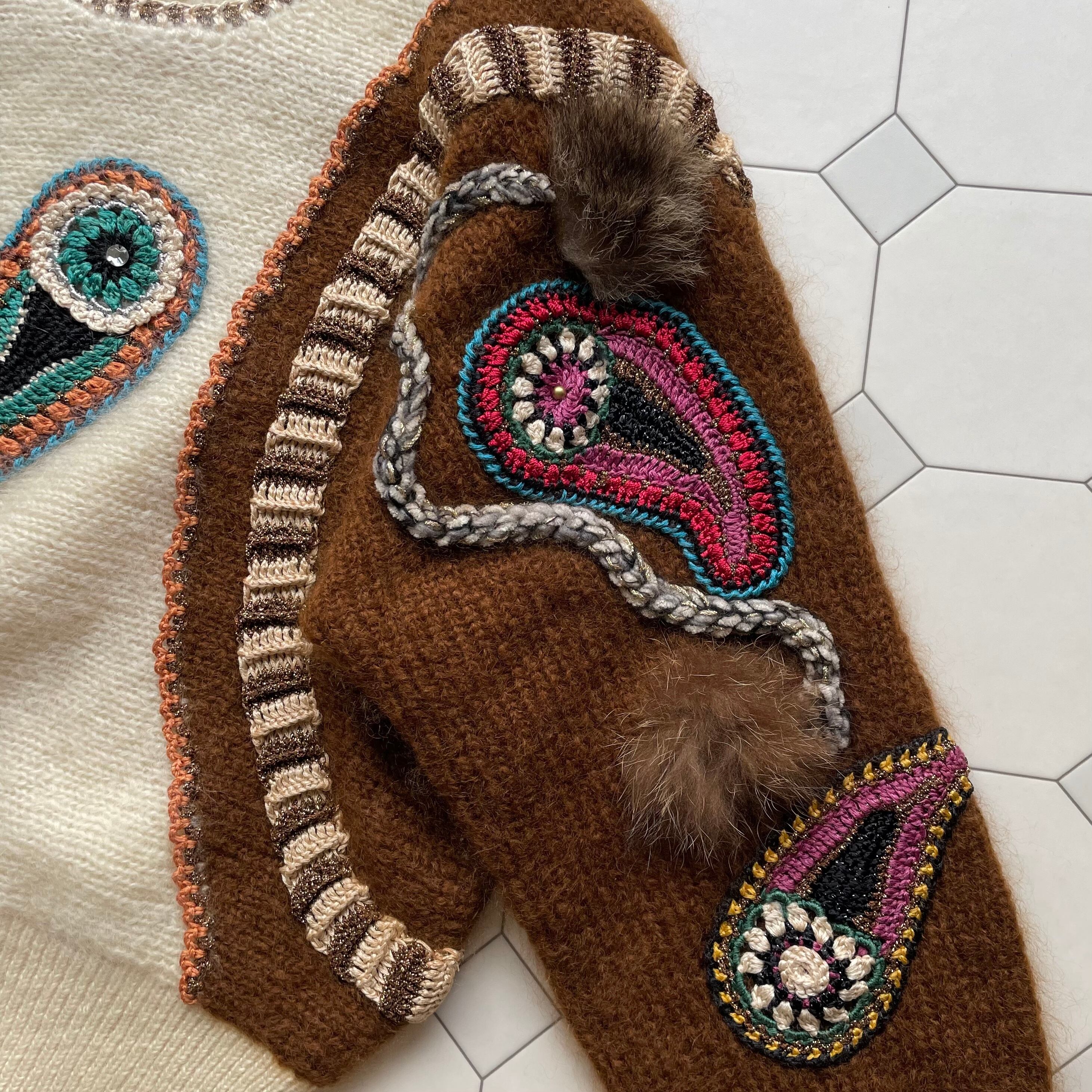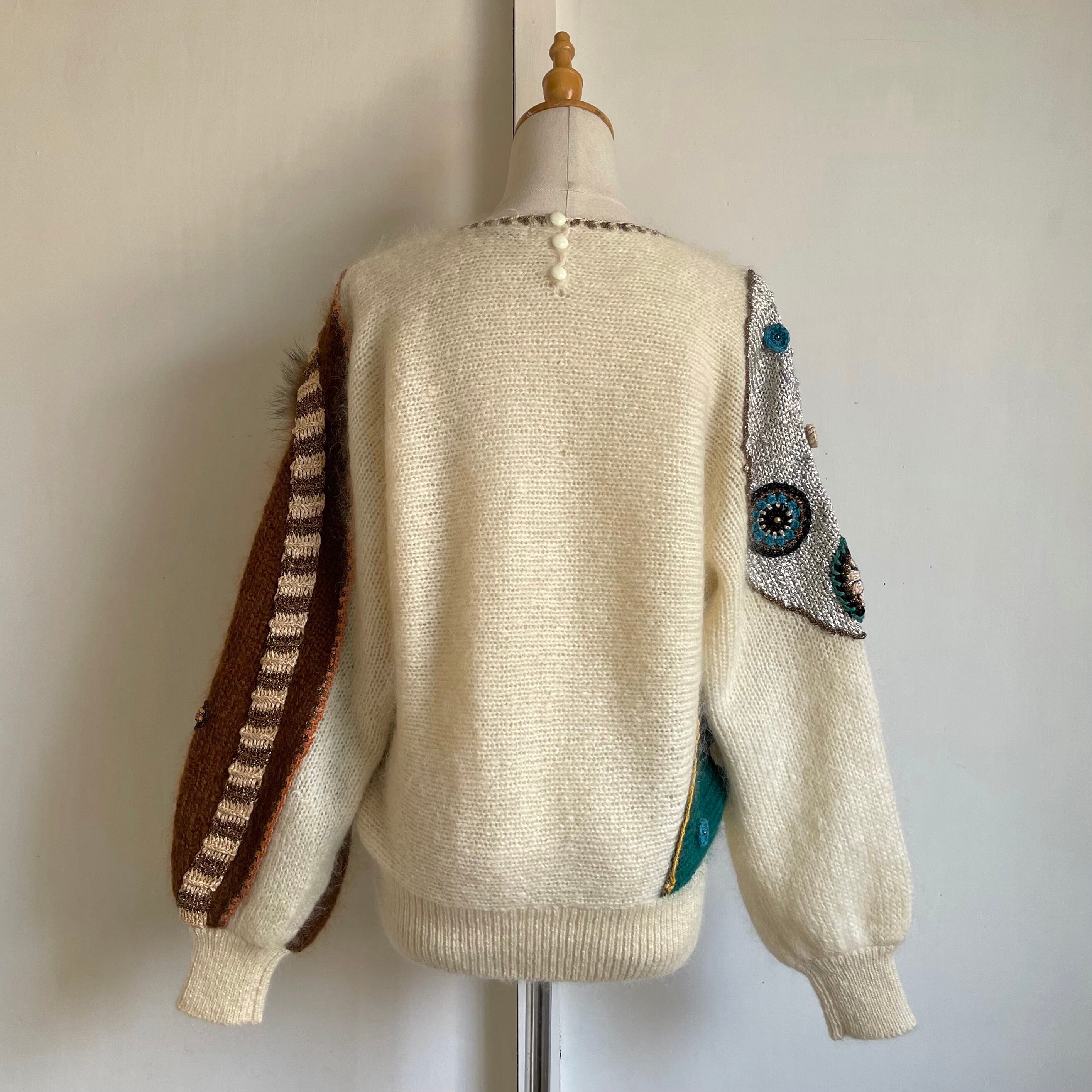 Magatama & point fur design knit 〈レトロ古着 勾玉&ポイントファー デザインニット セーター 〉