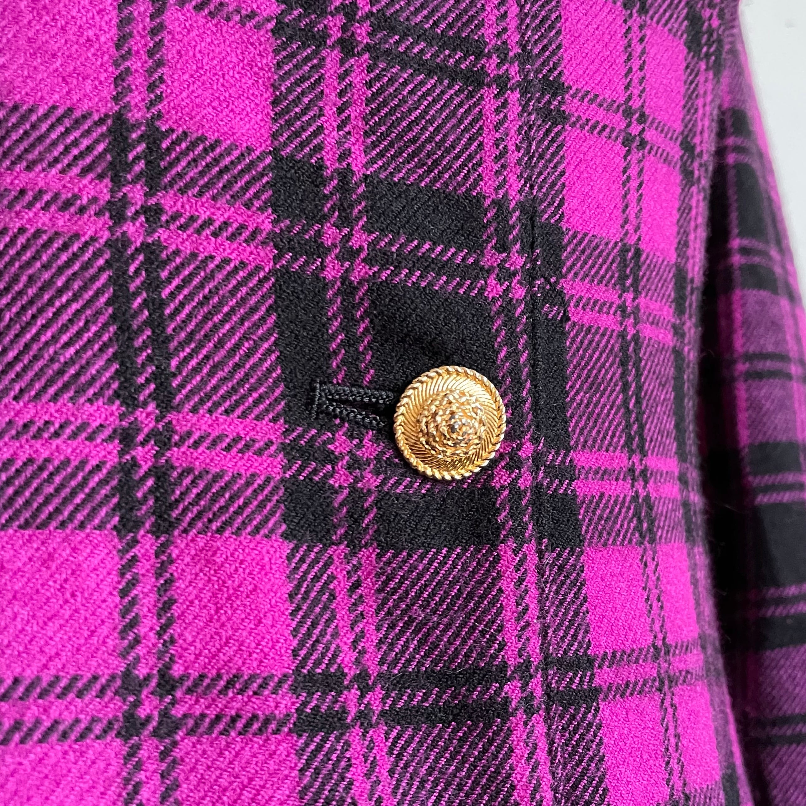 ビビットなパープルとブラックのチェックが目を惹くワンピース