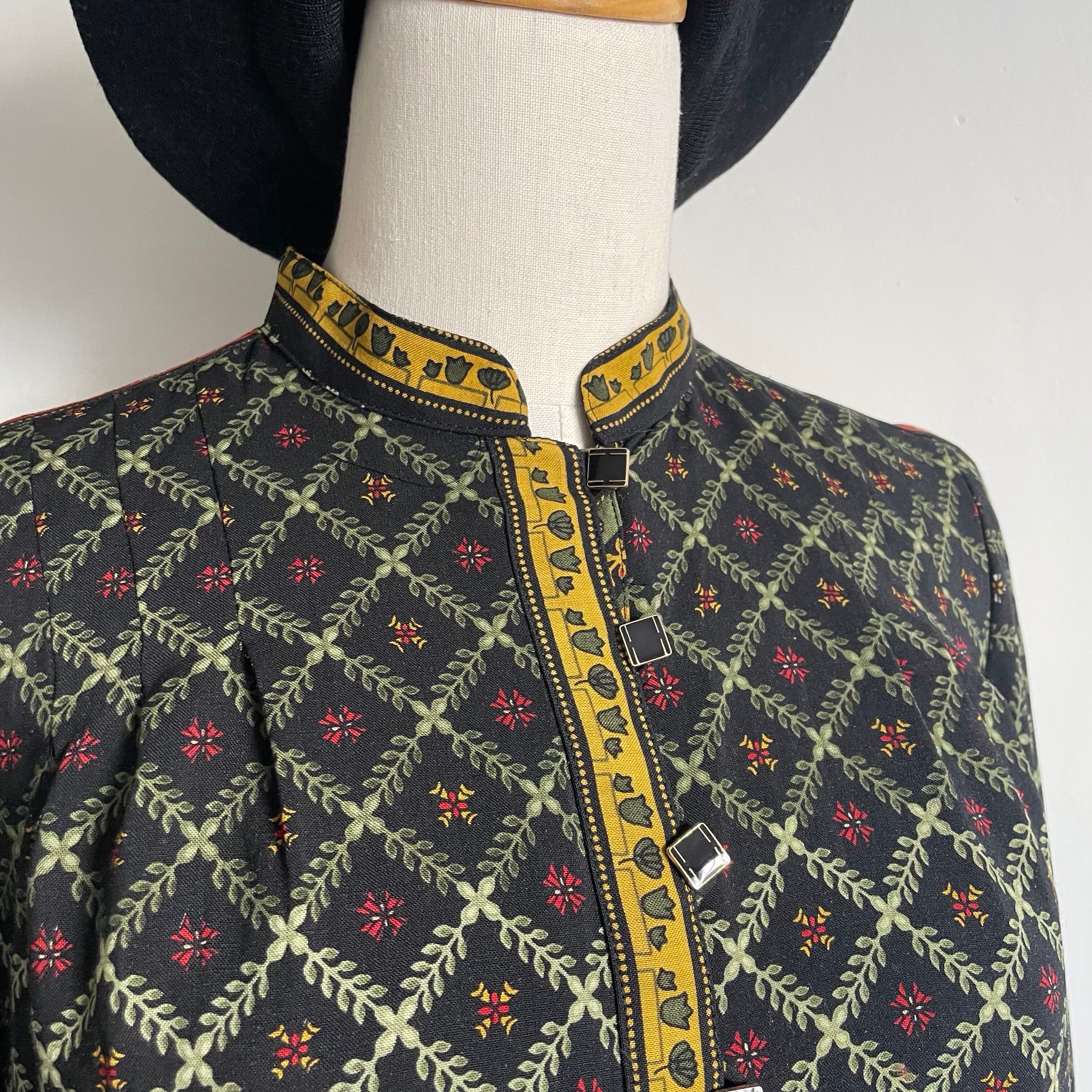 provence pattern A-line dress〈レトロ古着 プロバンス柄 Aライン ワンピース 黒〉