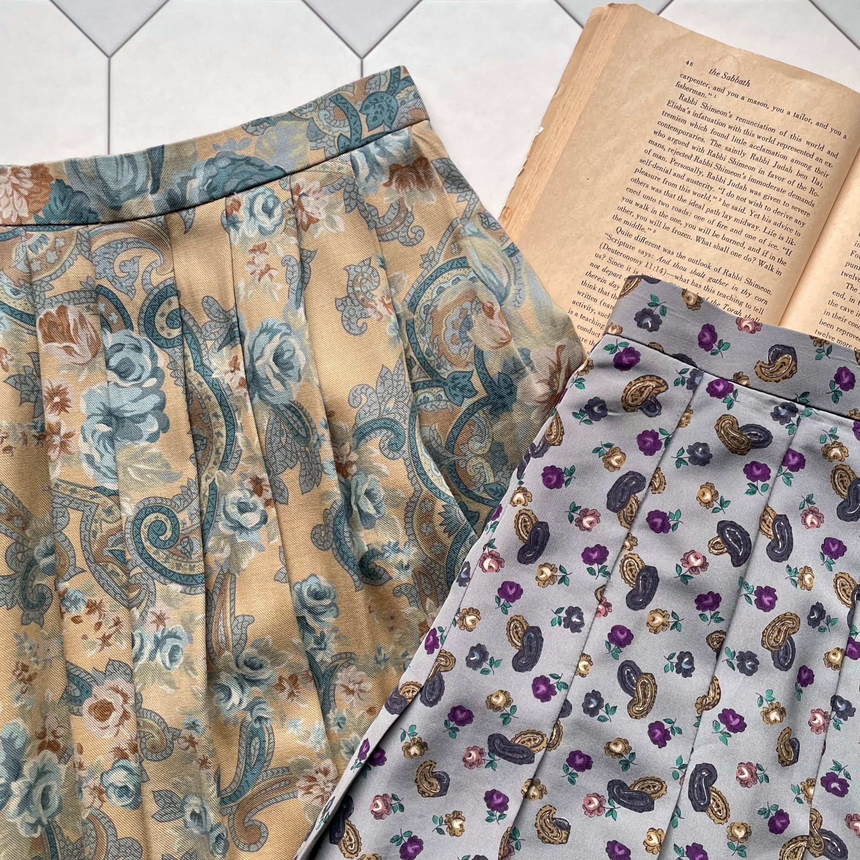 rose & paisley pleated skirt 〈レトロ古着 薔薇&ペイズリー柄 プリーツスカート〉