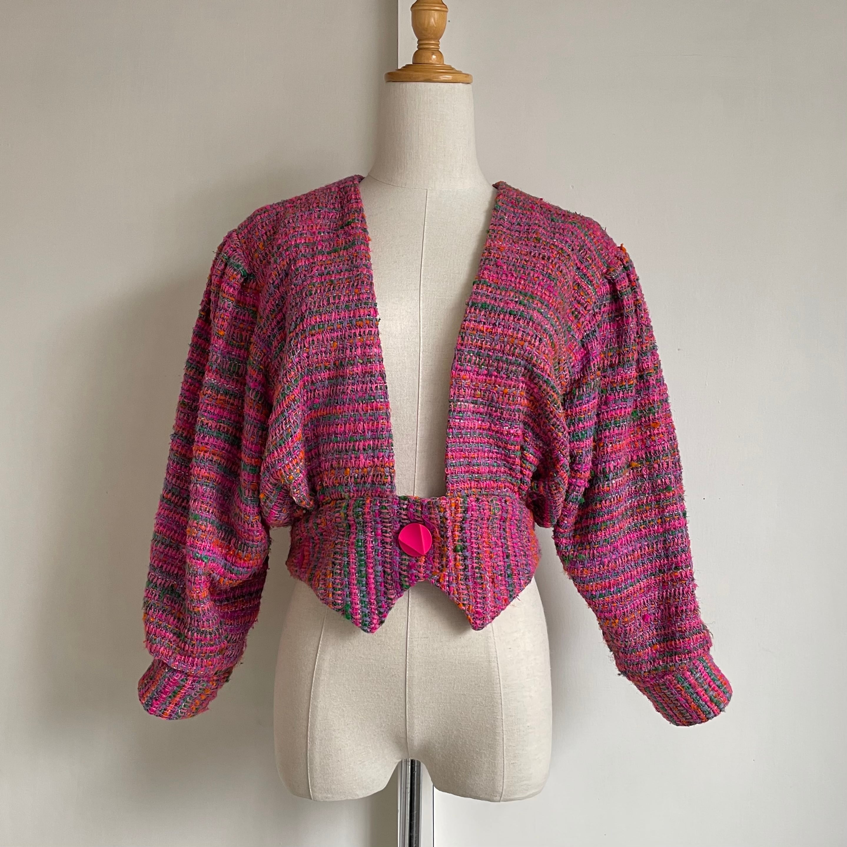 fuchsia pink tweed short jacket 〈レトロ古着 ピンク ツイード ショート丈 ジャケット 短丈〉