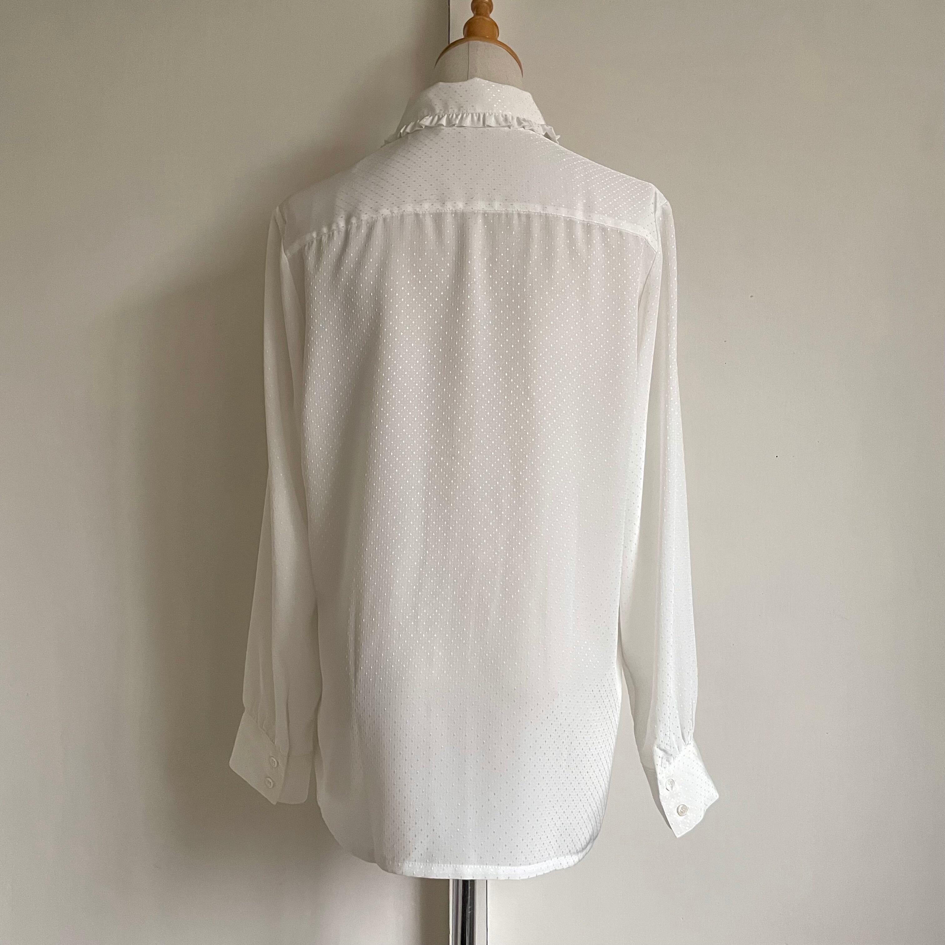 frill collar white blouse 〈レトロ古着 フリルカラー ホワイト ブラウス 白〉