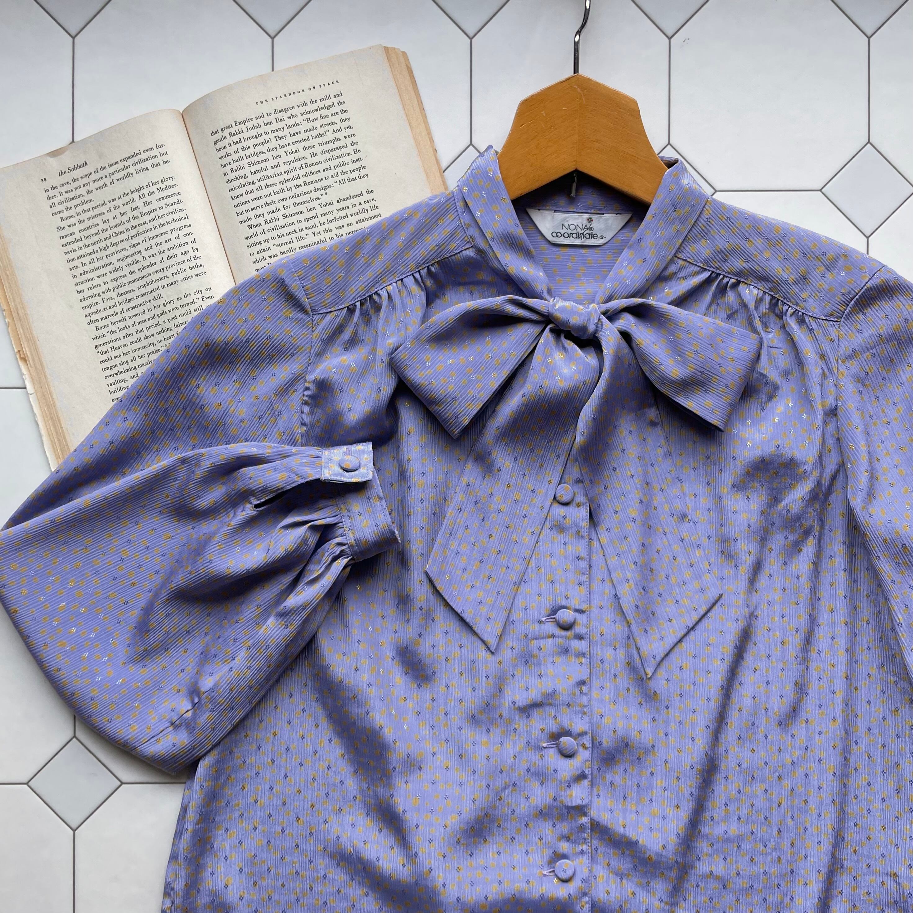purple & yellow dot bowtie blouse 〈レトロ古着 パープル&イエロードット ボウタイブラウス 紫〉