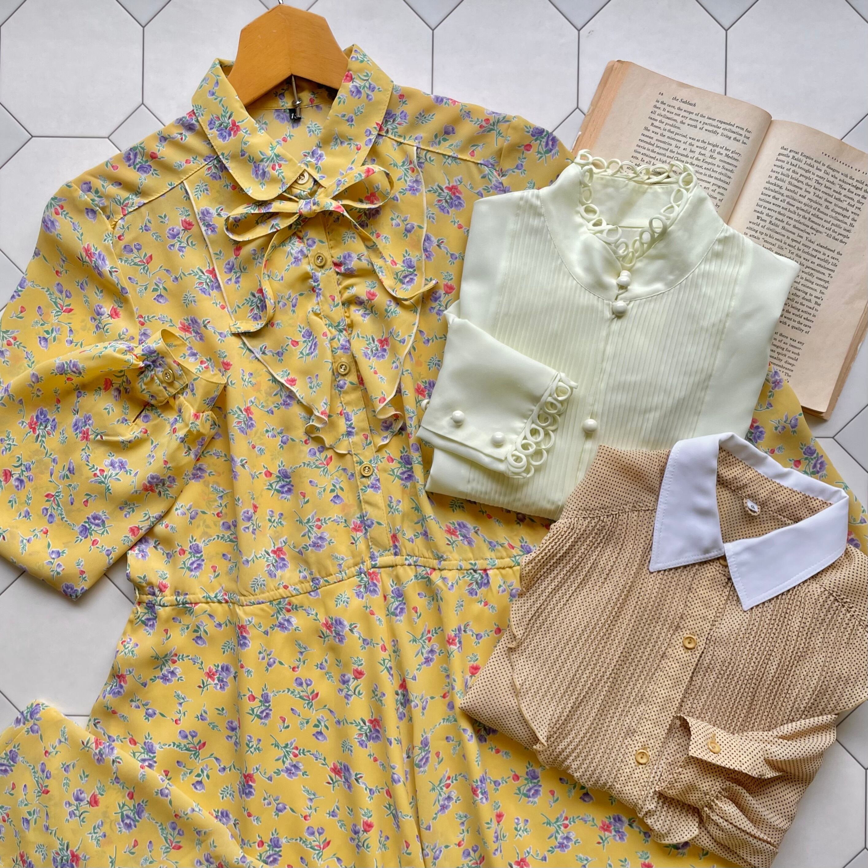 pale lemon yellow blouse 〈レトロ古着 ペール レモンイエロー ブラウス 黄色〉