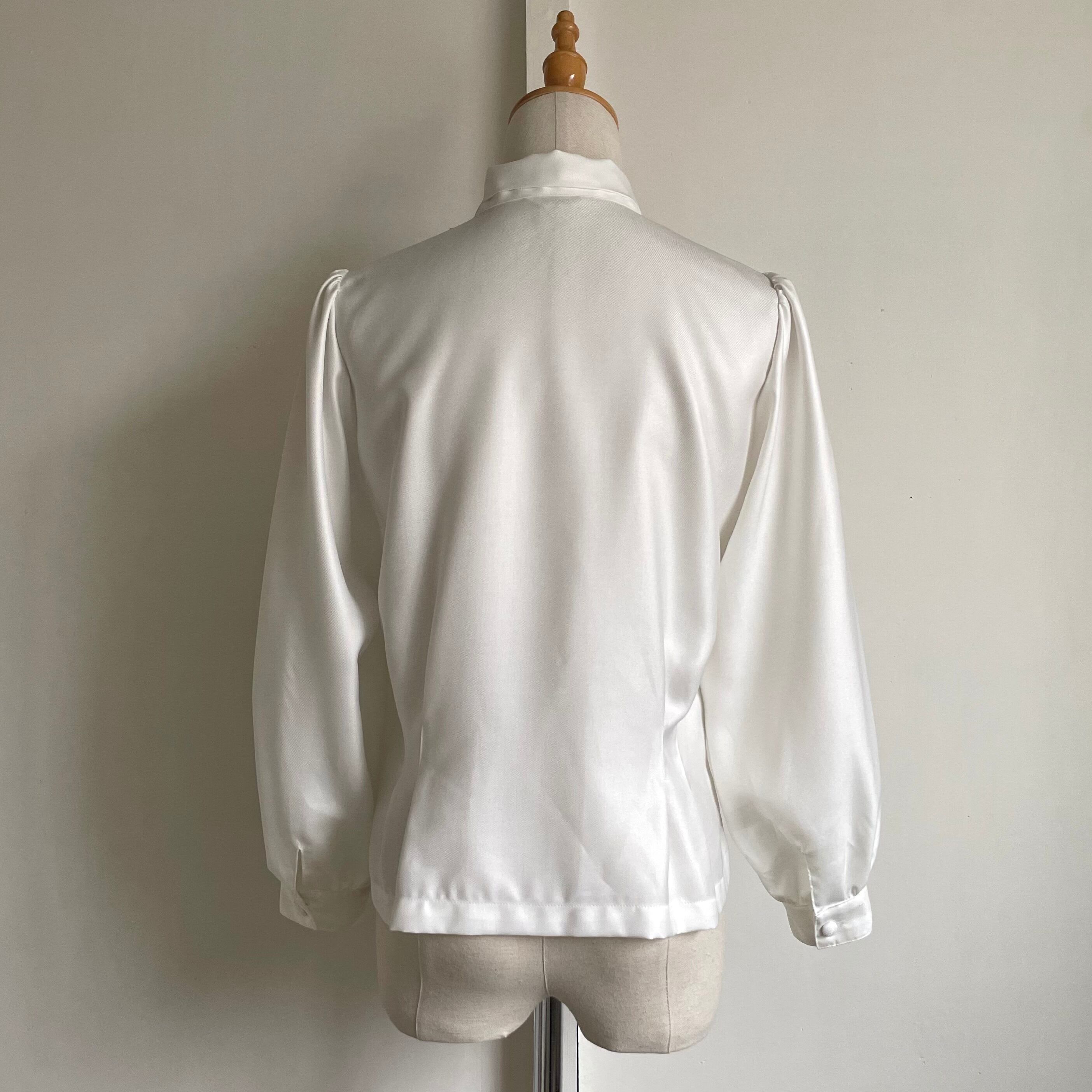 cutwork embroidery bowtie white blouse 〈レトロ古着 カットワーク刺繍 ボウタイ ホワイトブラウス 白〉