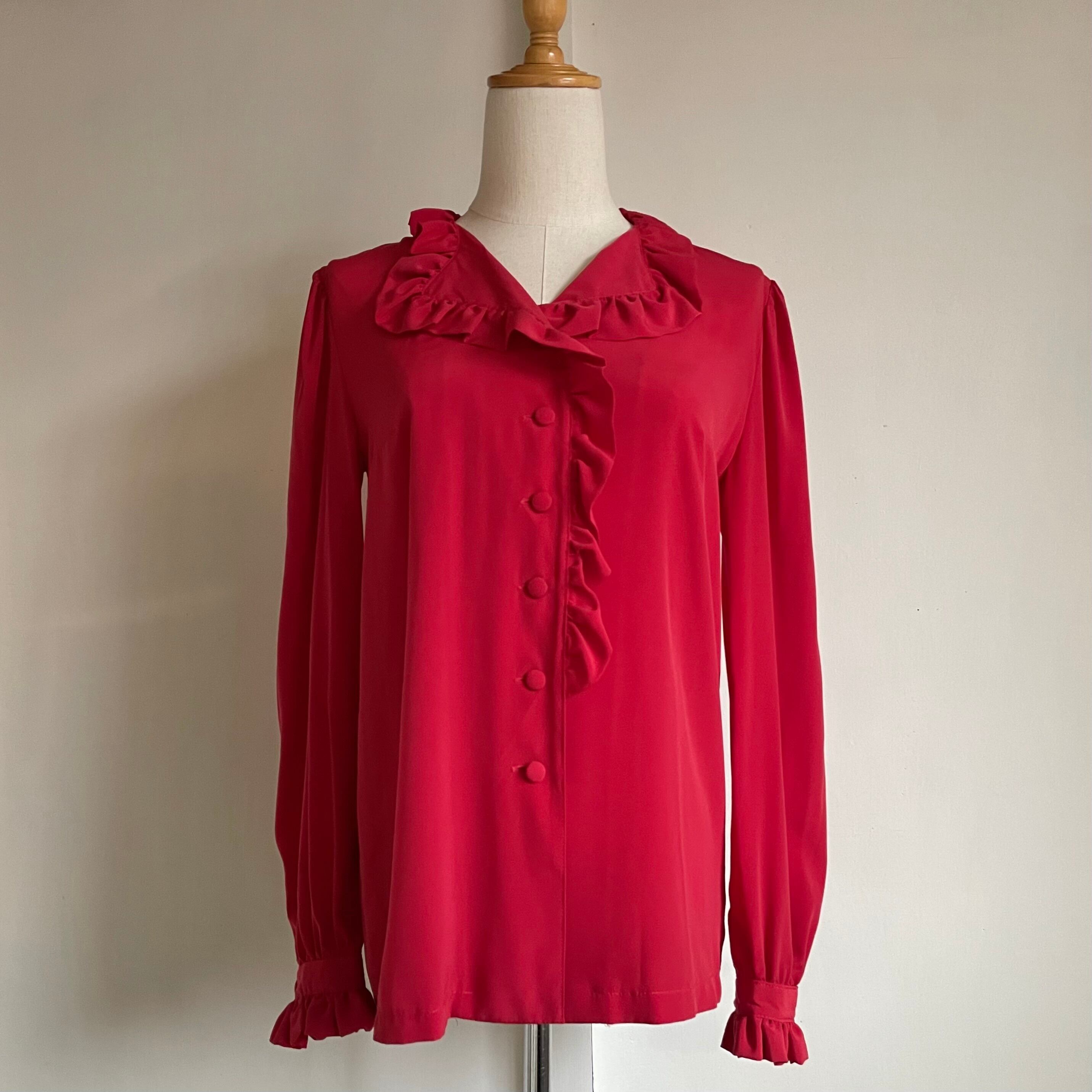 open collar frill red blouse〈レトロ古着 開襟 フリル レッドブラウス〉
