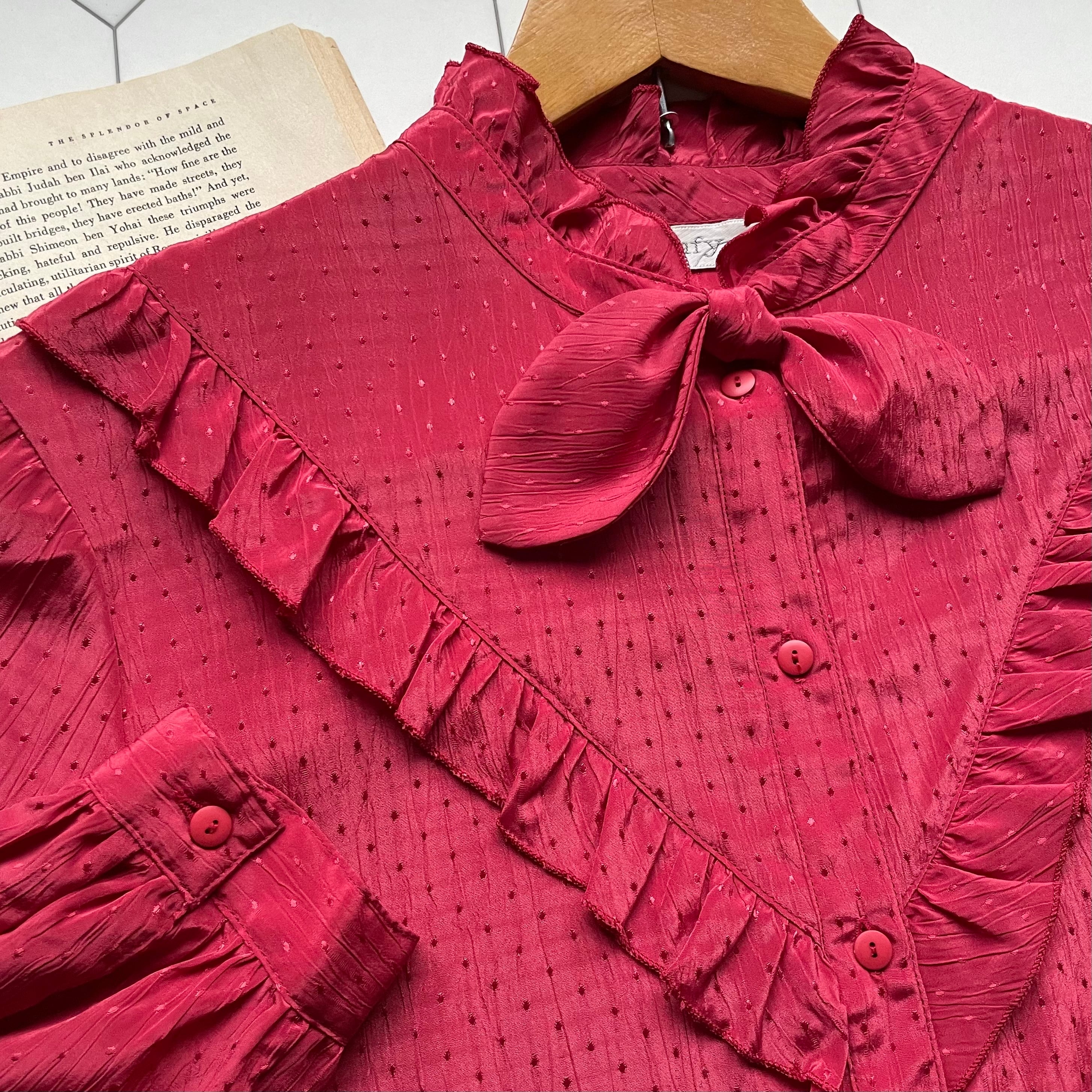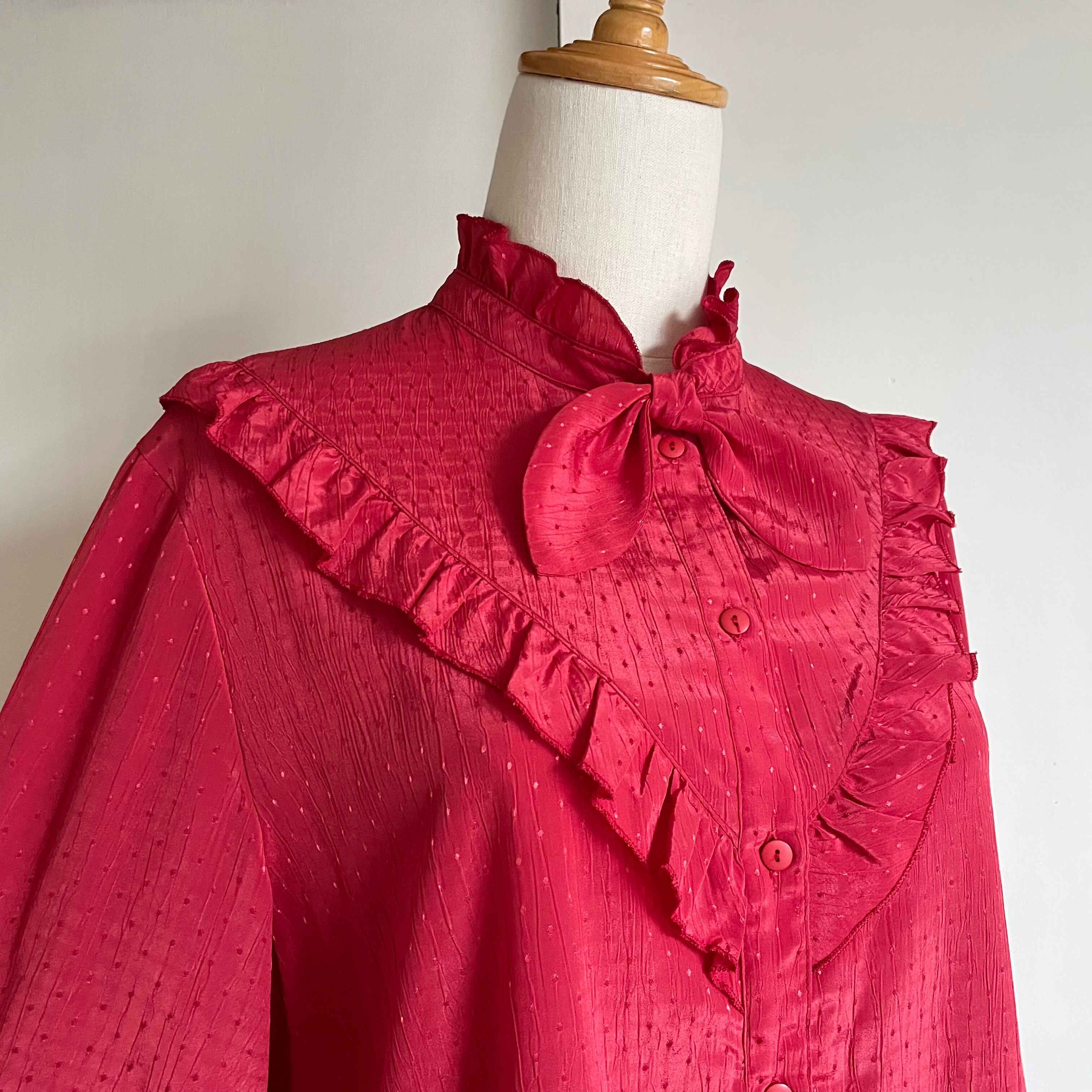 scarf collar frill red blouse 〈レトロ古着 スカーフカラー フリル レッドブラウス 赤〉