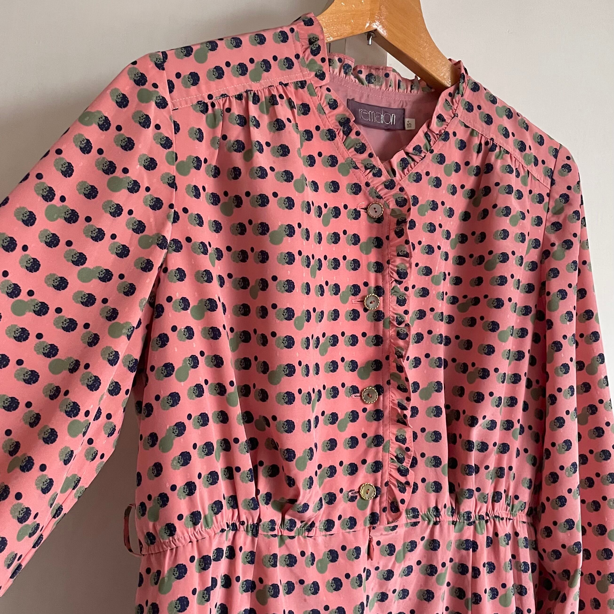 multi dot pink dress〈レトロ古着 マルチドット ピンク ワンピース〉