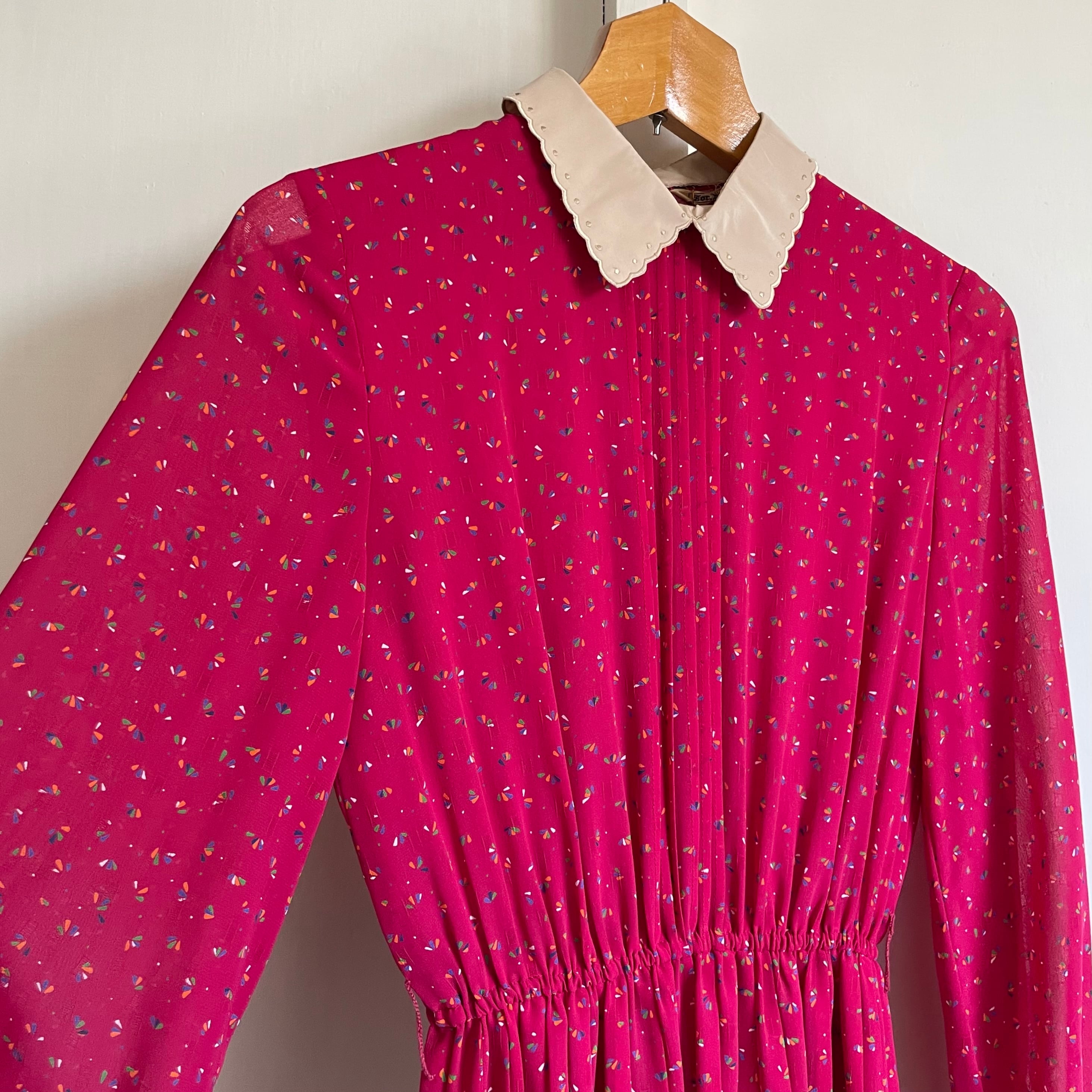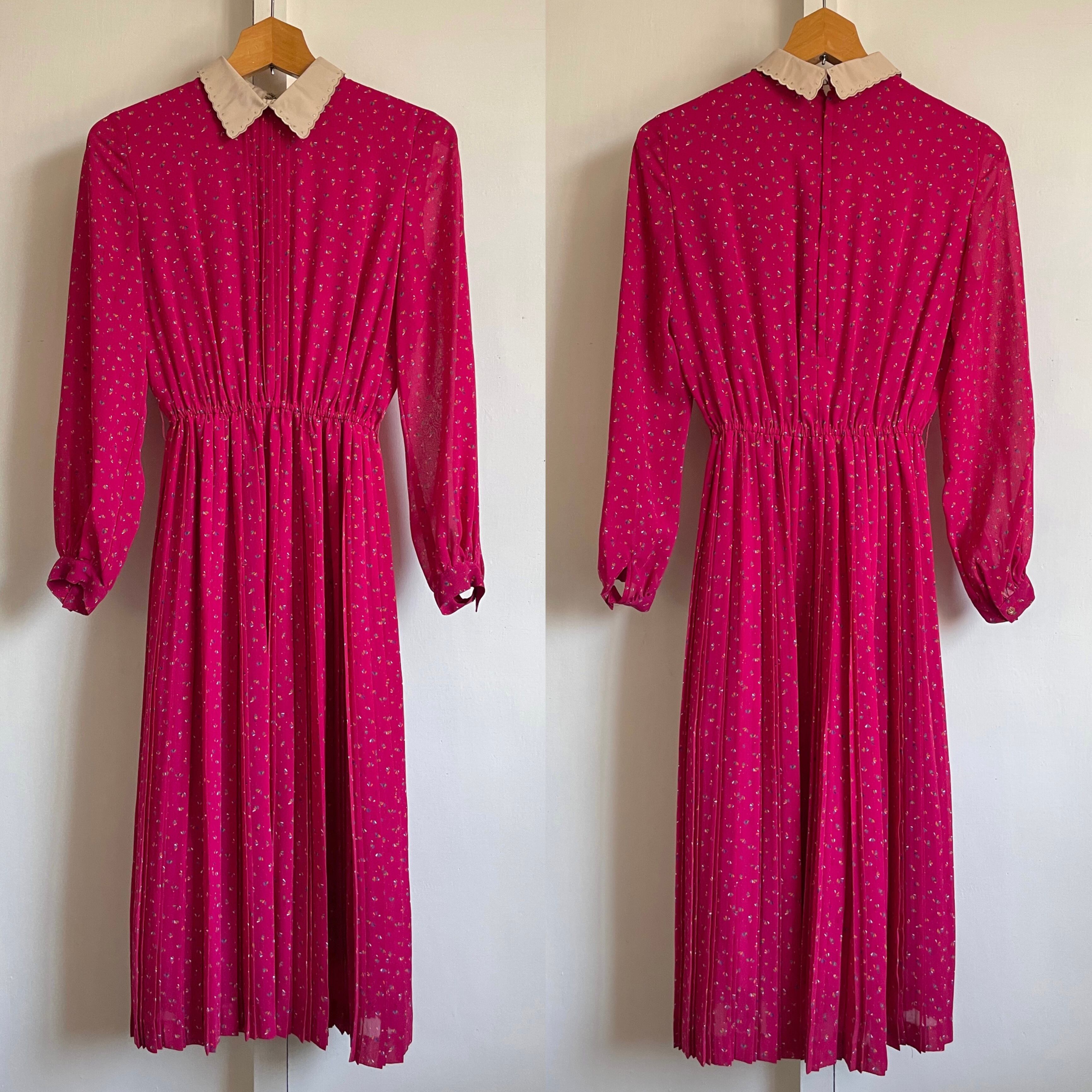 vivid pink pleated dress〈レトロ古着 ビビットピンク プリーツワンピース〉