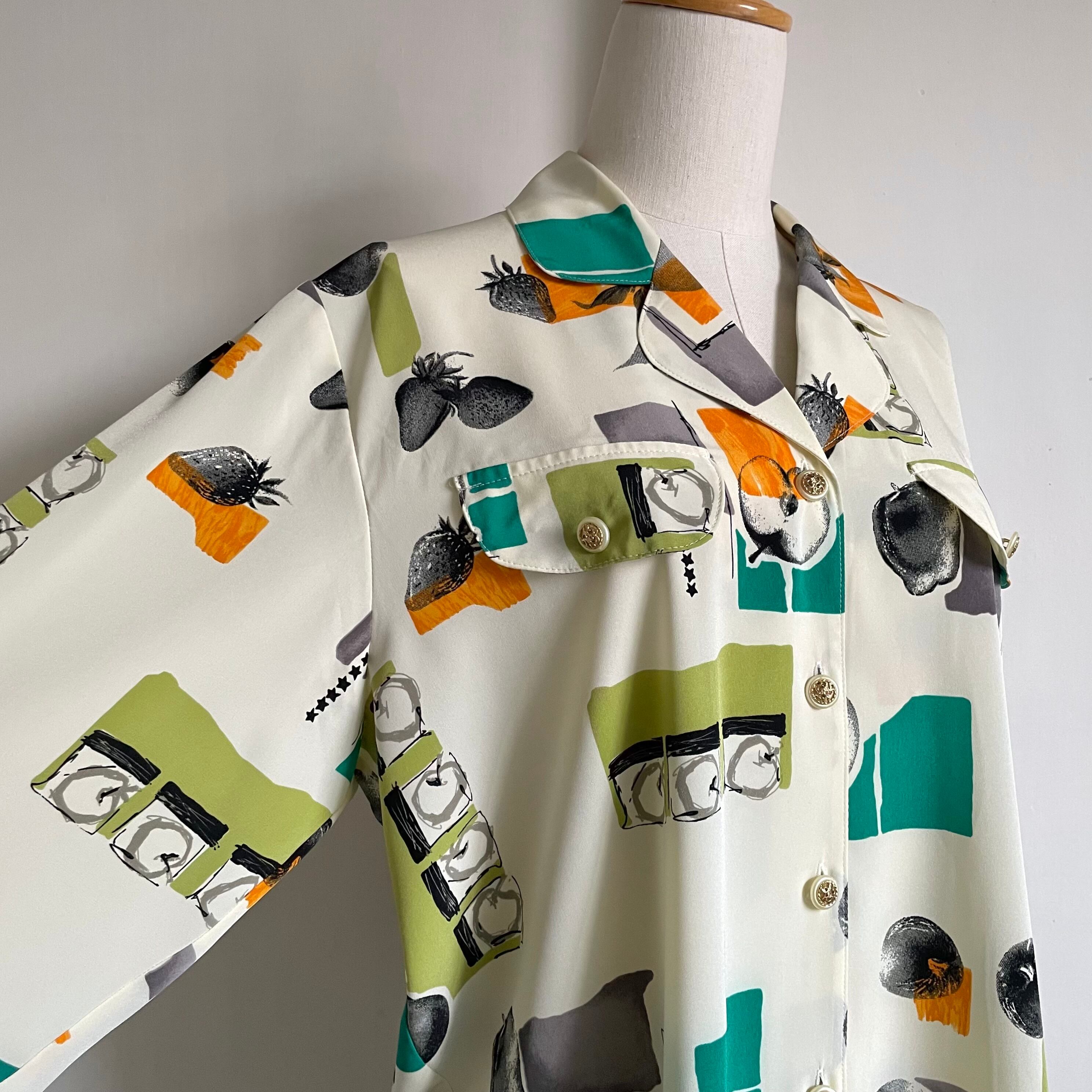 fruit print open collar shirt 〈レトロ古着 フルーツ柄 オープンカラーシャツ 日本製〉