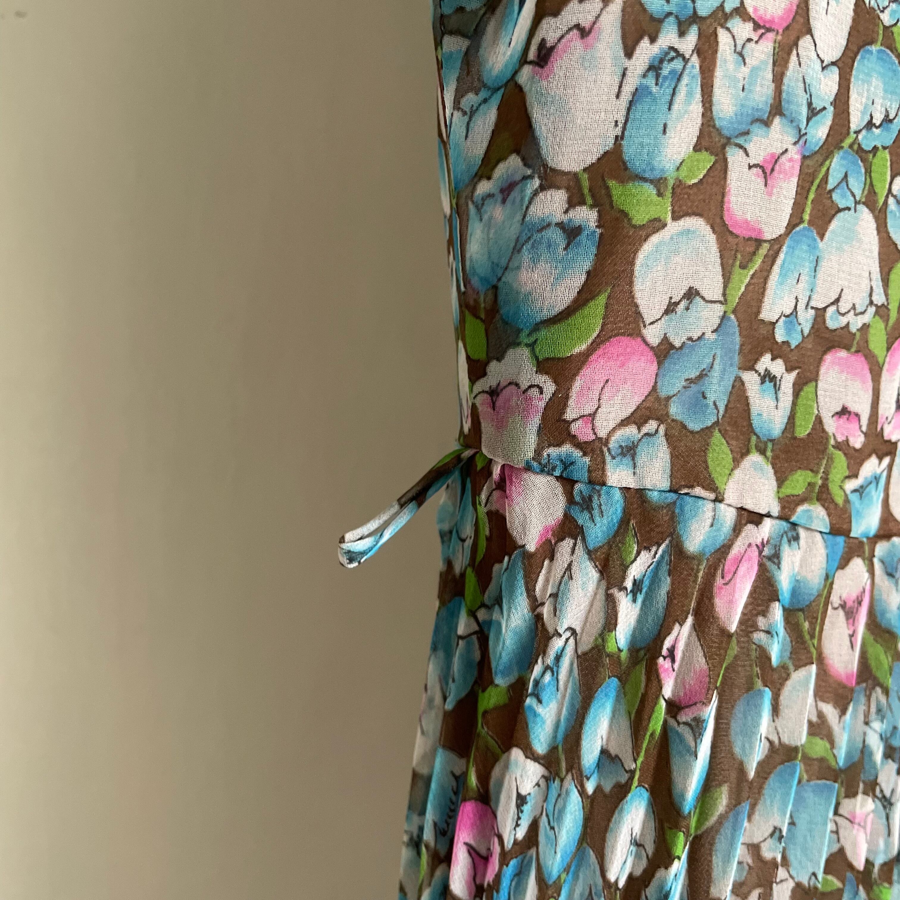 tulip print sheer bowtie dress〈レトロ古着 チューリップ柄 シアー ボウタイ ワンピース〉