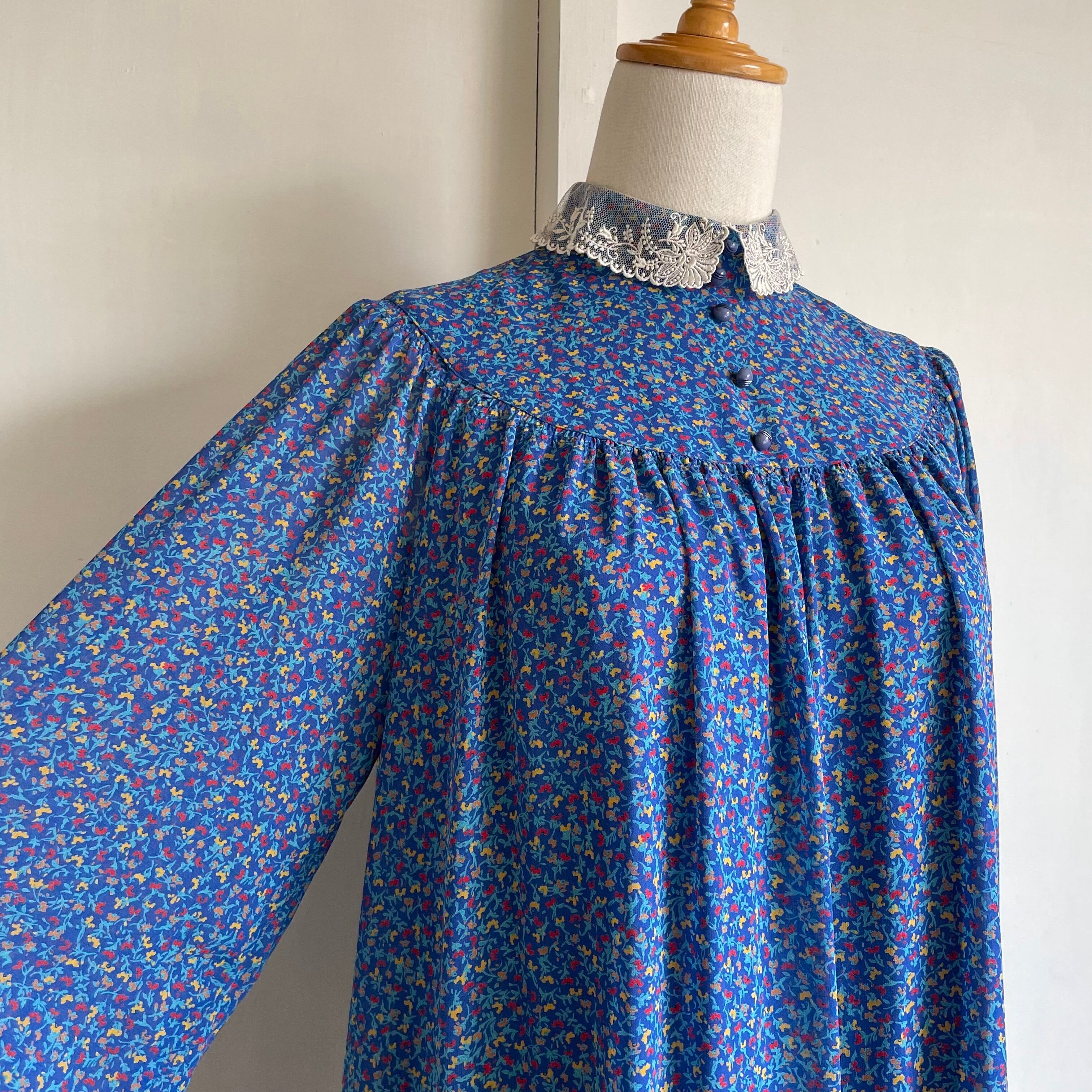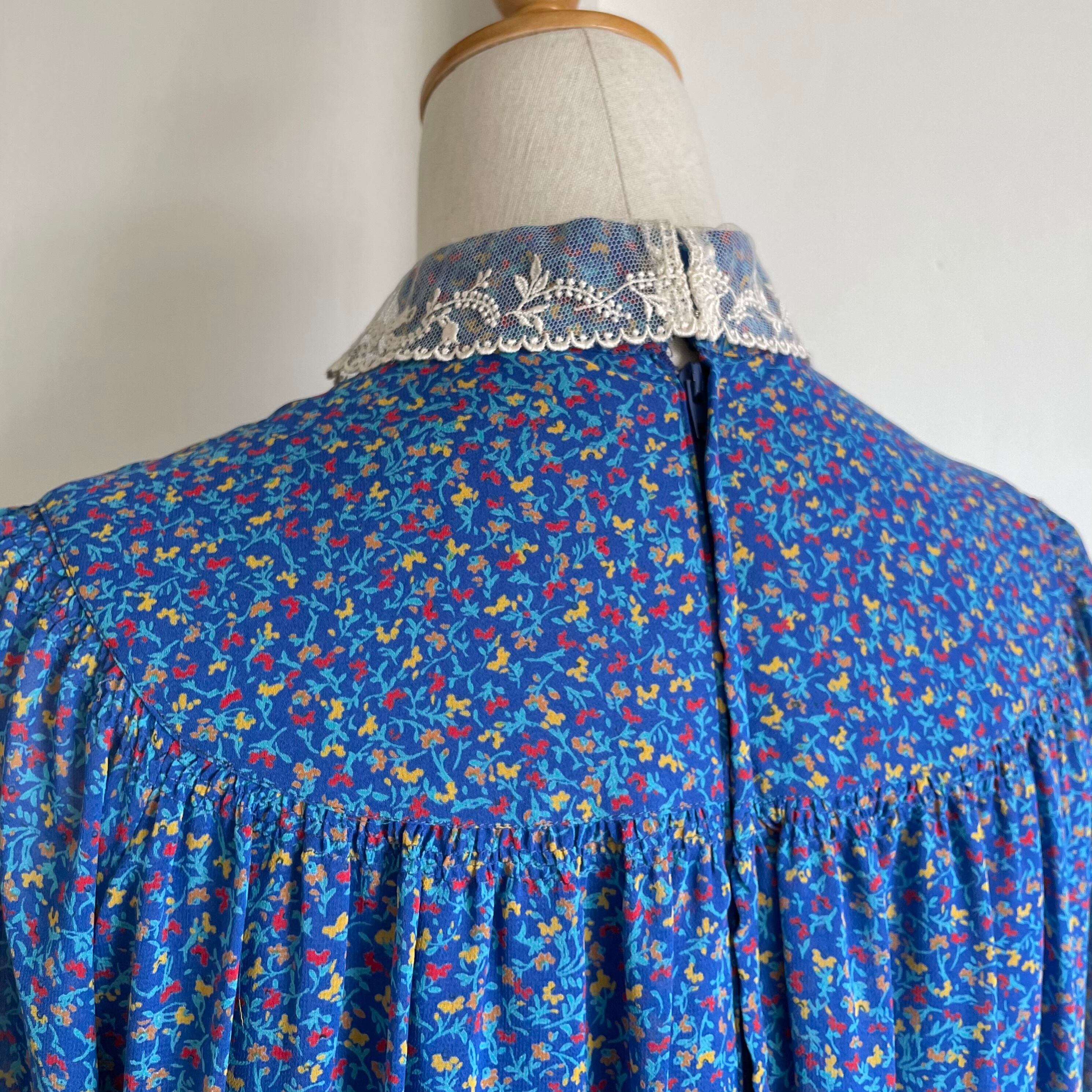 lace collar floral A-line dress〈レトロ古着 レース襟 小花柄 Aラインワンピース〉