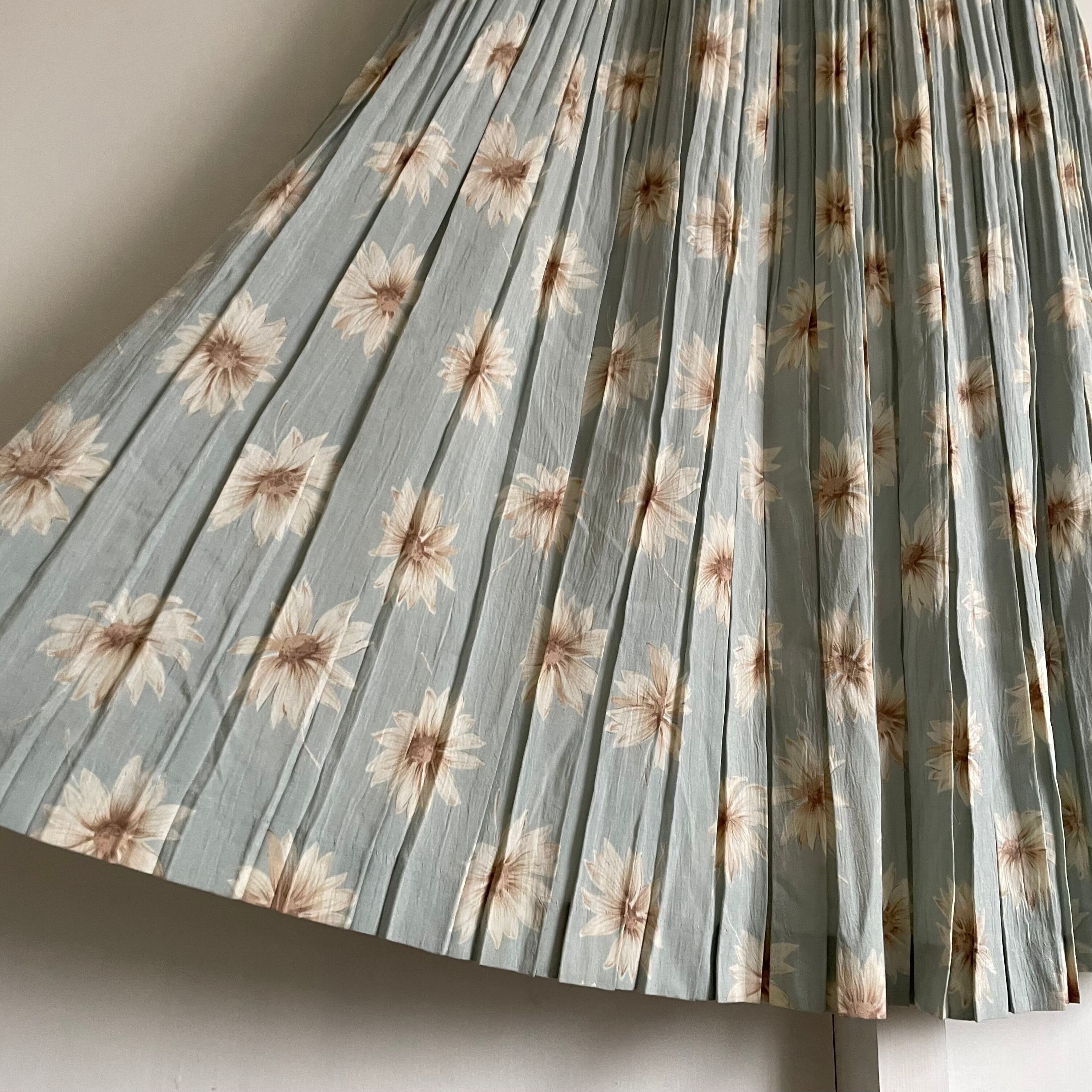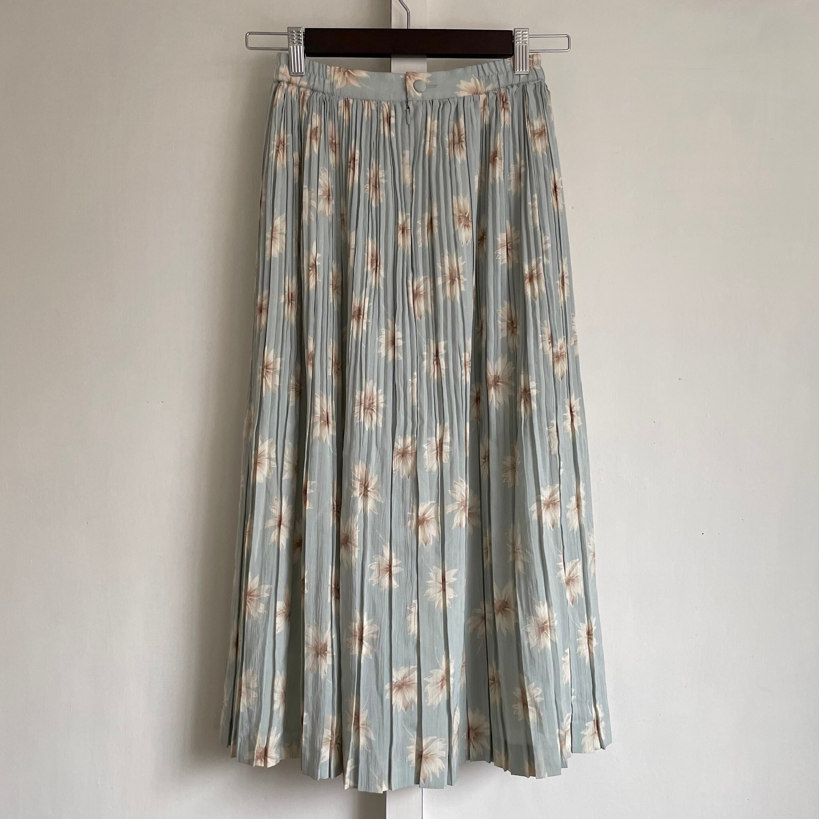 pale light blue floral pleated skirt 〈レトロ古着 ペールトーン 花柄 プリーツスカート〉