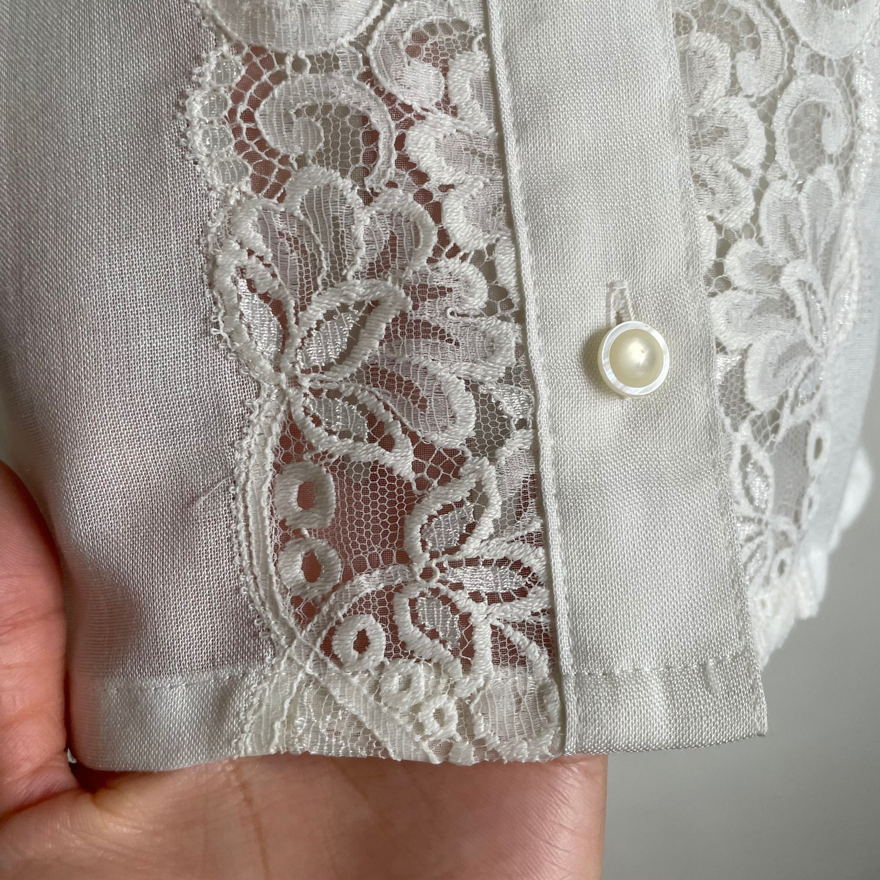 russell lace 3/4 sleeve white blouse〈レトロ古着 ラッセルレース 7分袖 ホワイトブラウス 白〉