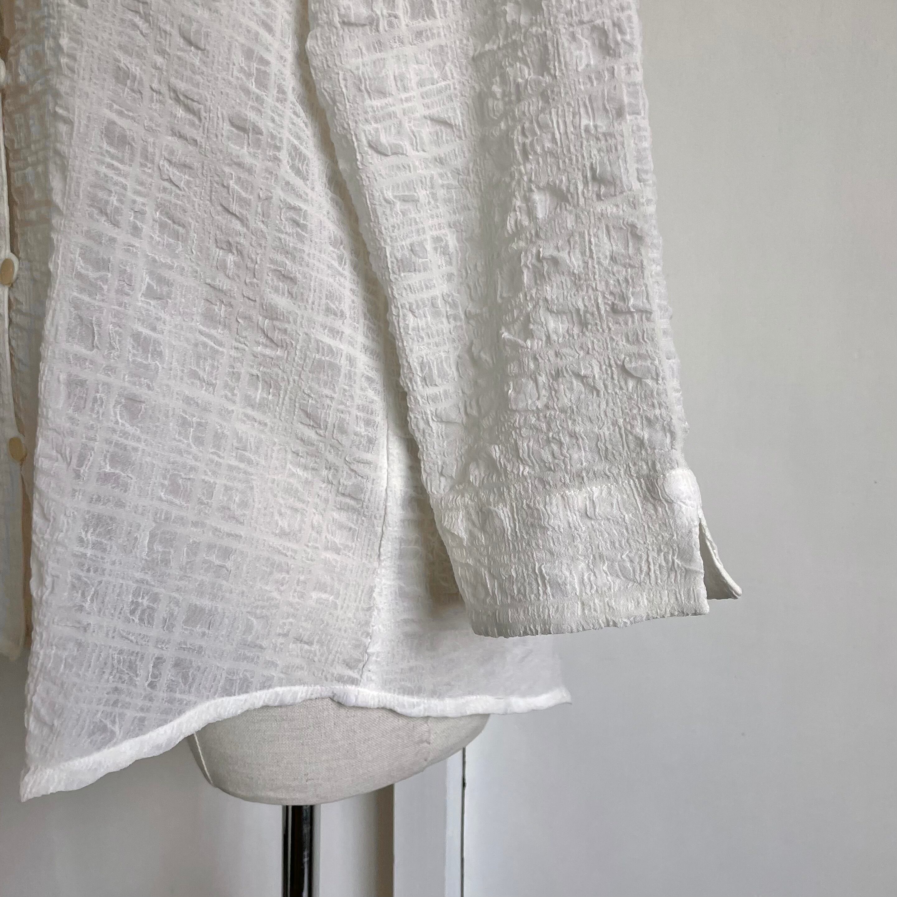 3/4 sleeve white sheer shirt 〈レトロ古着 七分袖 ホワイト シアーシャツ 白 ブラウス〉