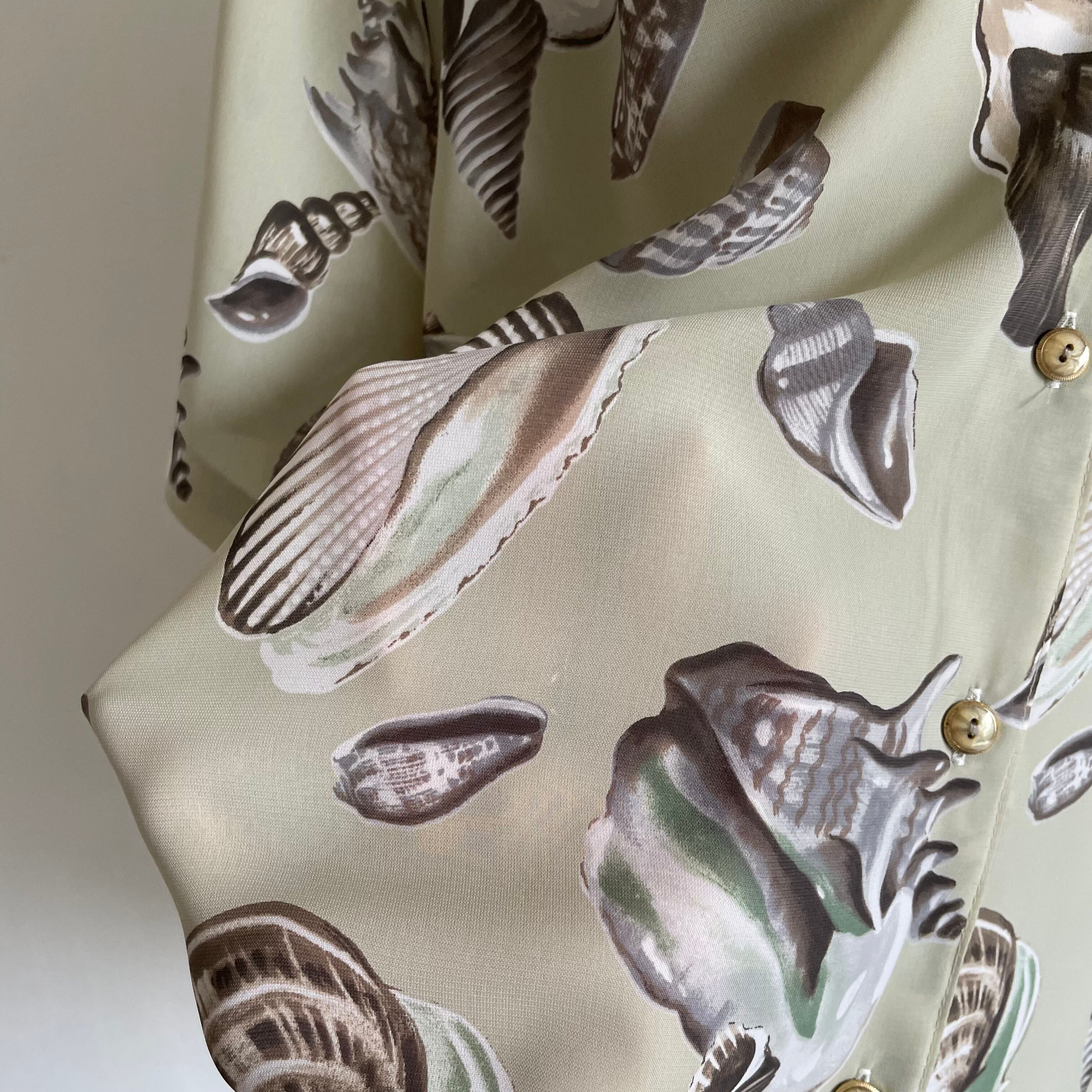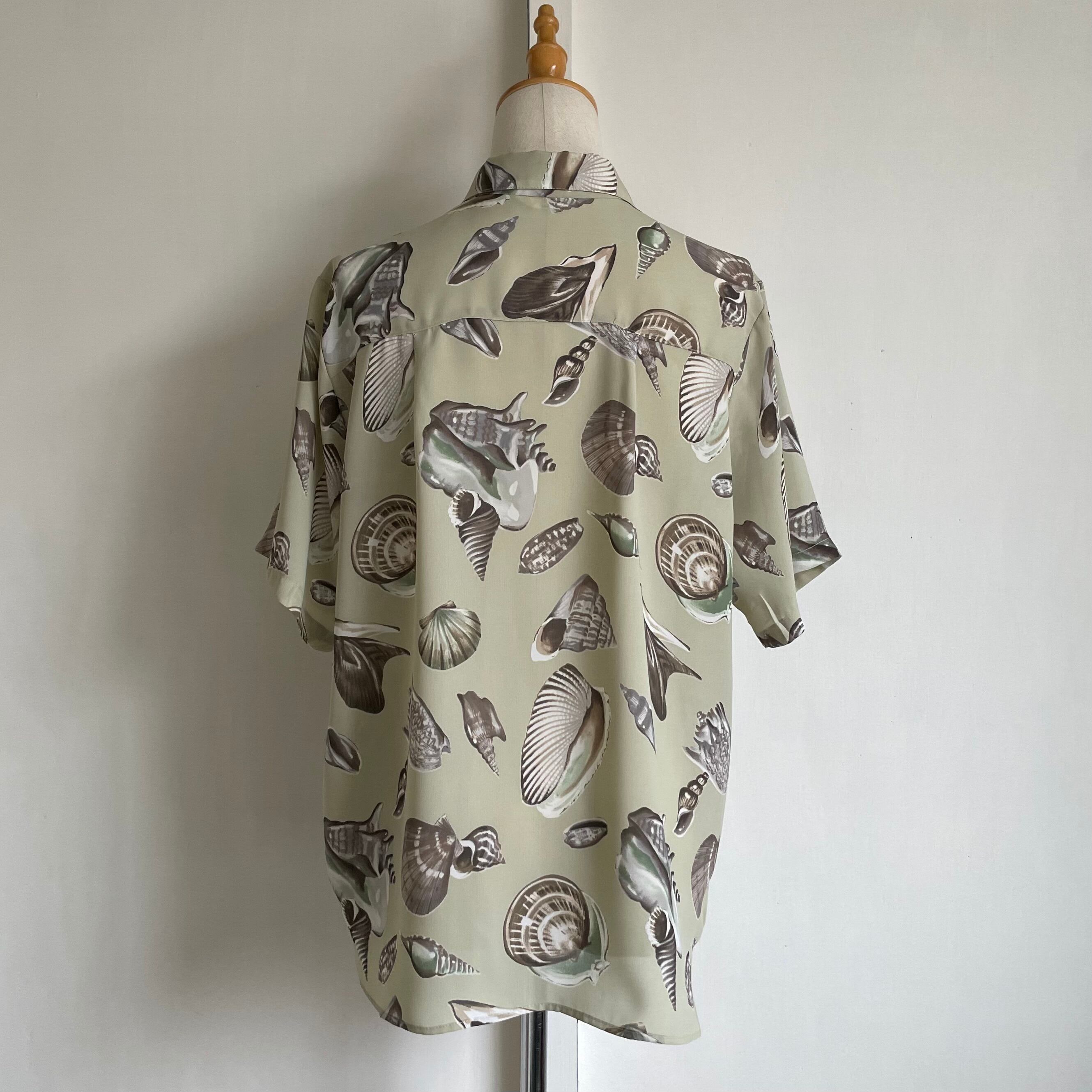 さまざまな種類の貝殻が大胆に描かれた柄シャツ