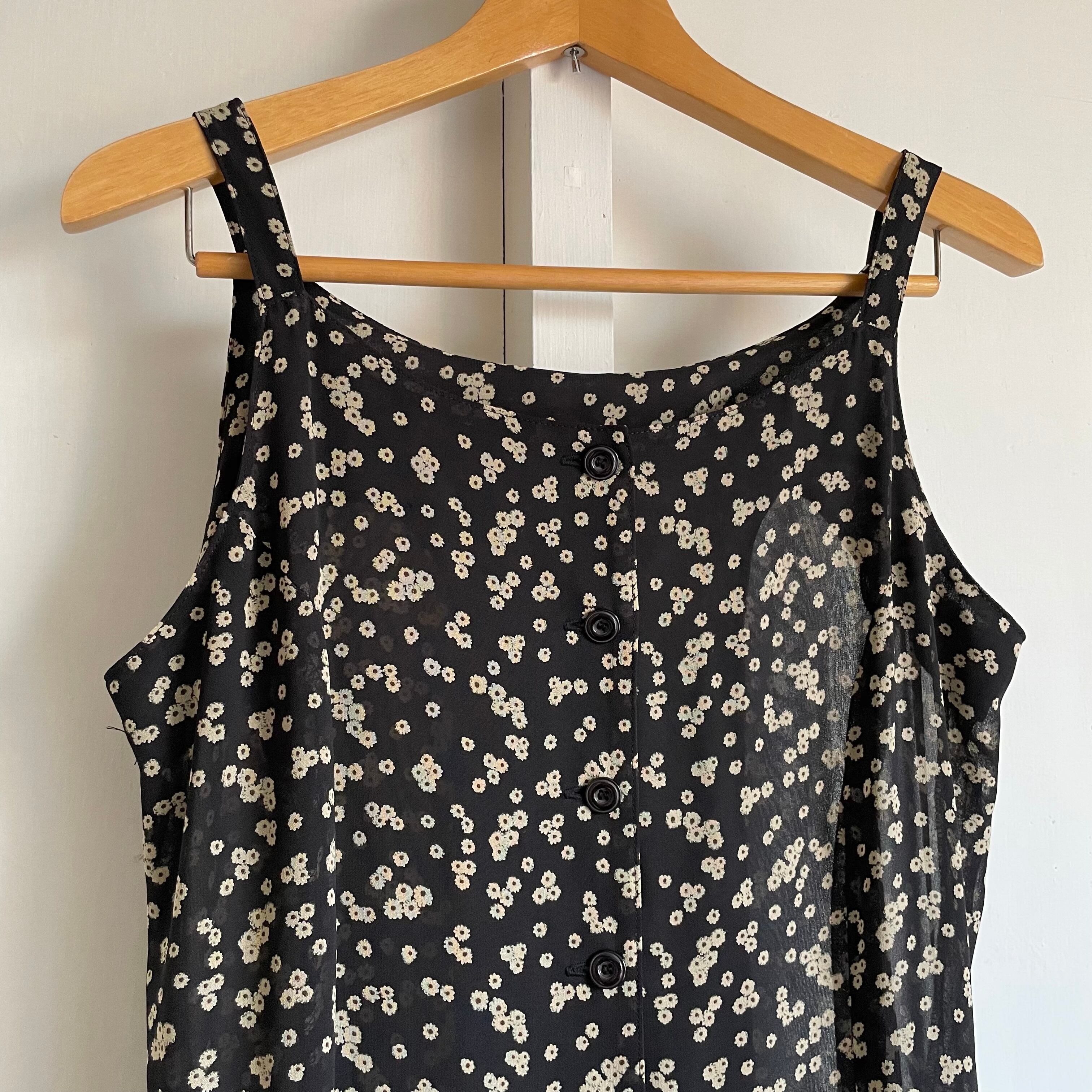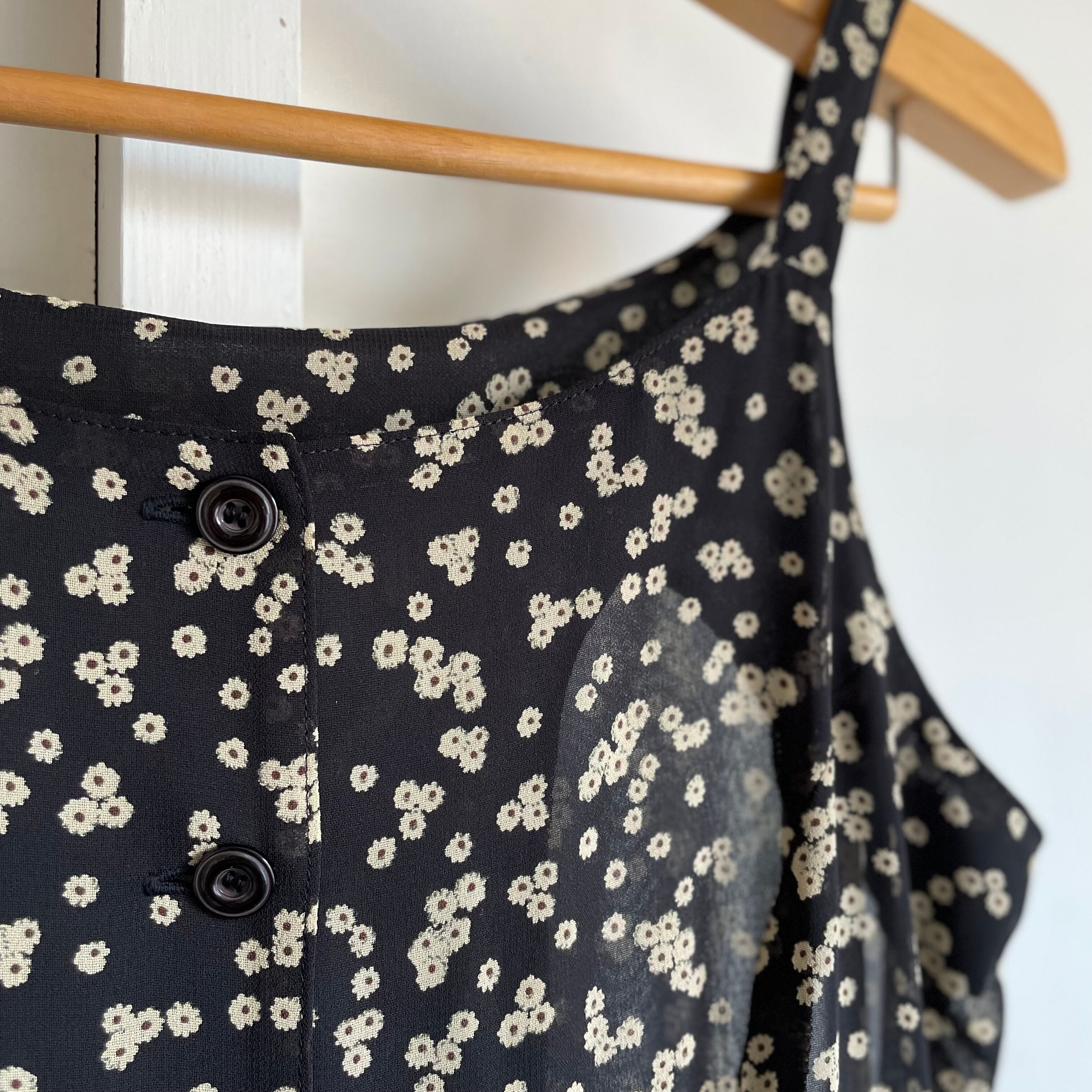 small flower print camisole dress〈レトロ古着 小花柄 キャミソール ワンピース 日本製 黒〉