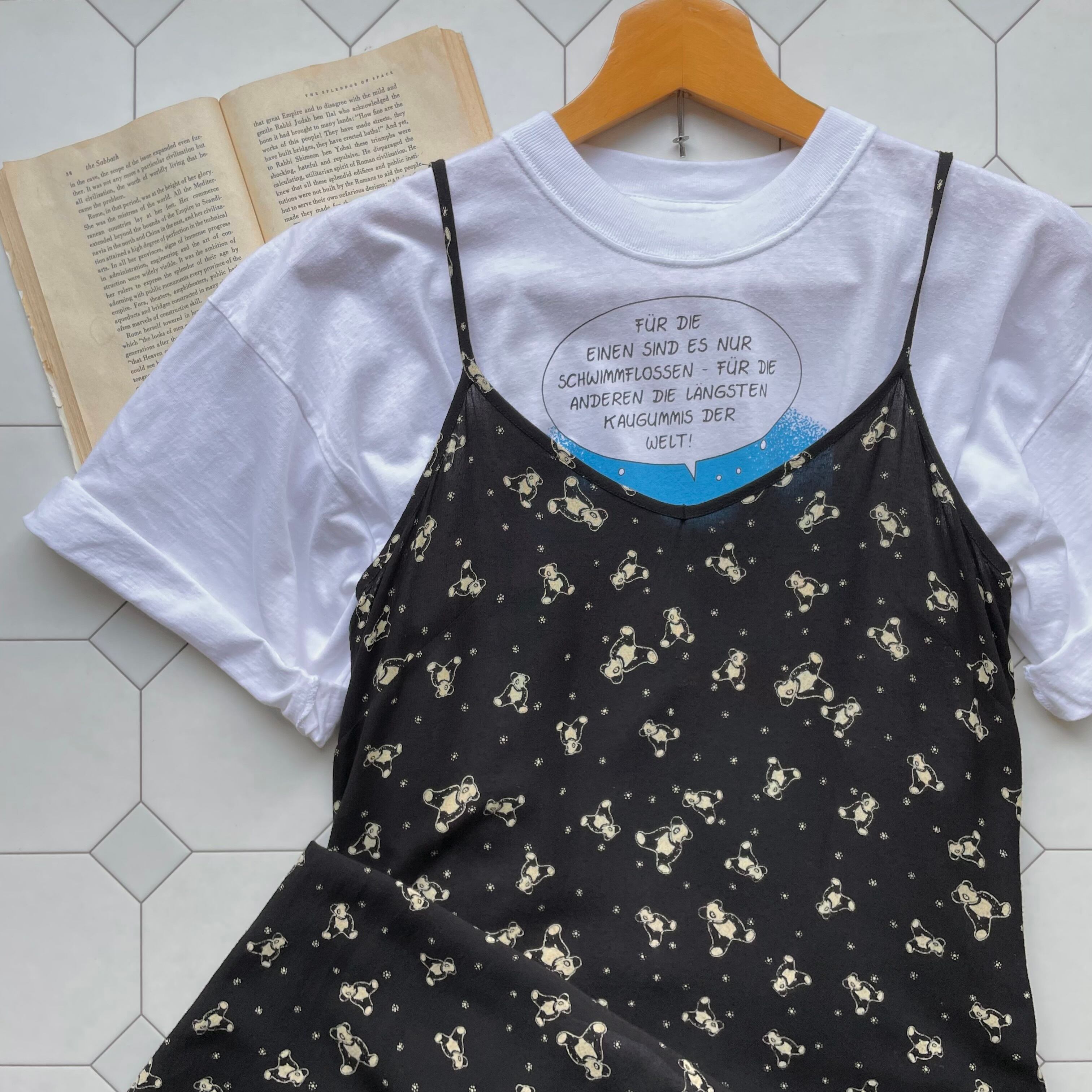 panda print camisole dress〈レトロ古着 パンダ柄 キャミソール ワンピース 黒 パオデロ 〉