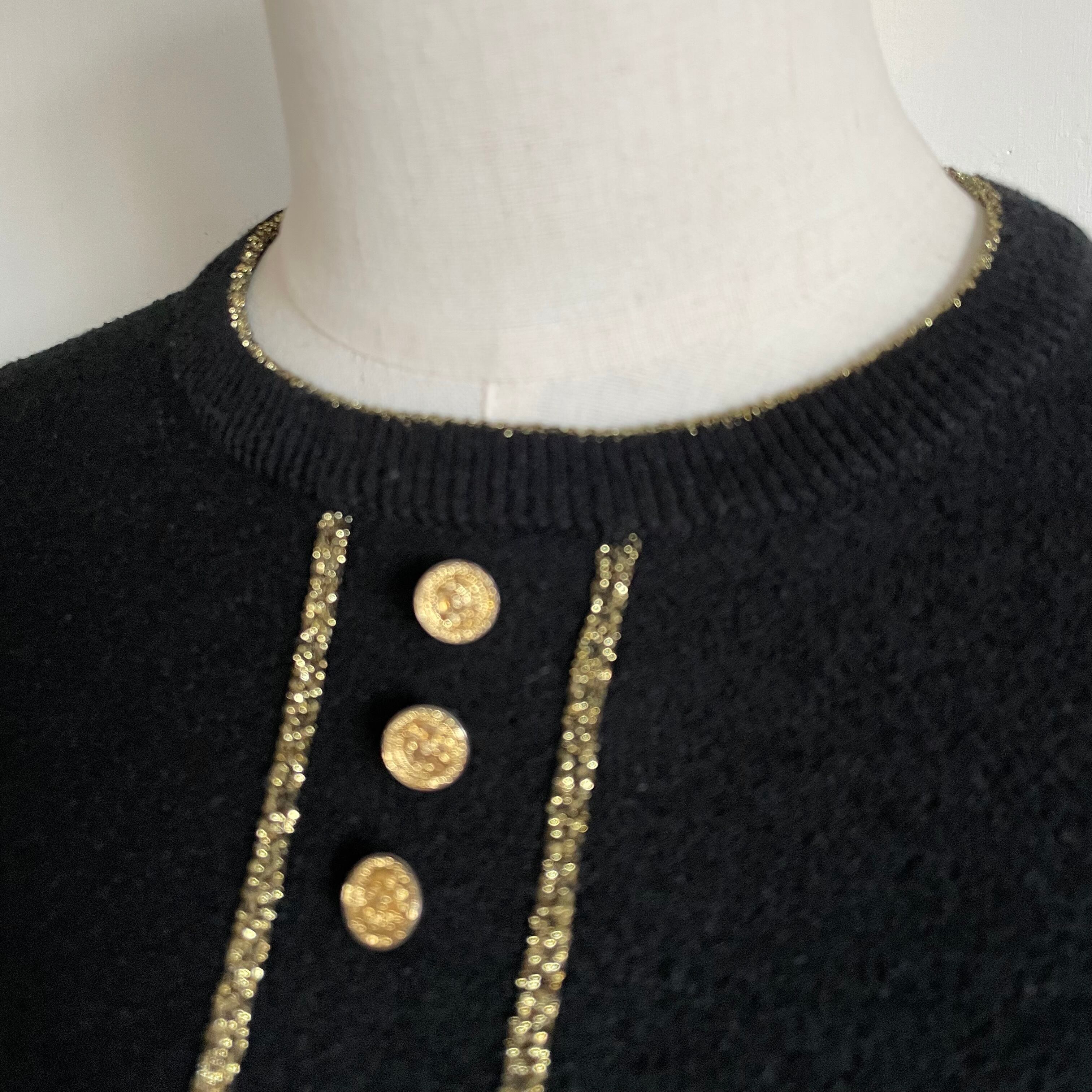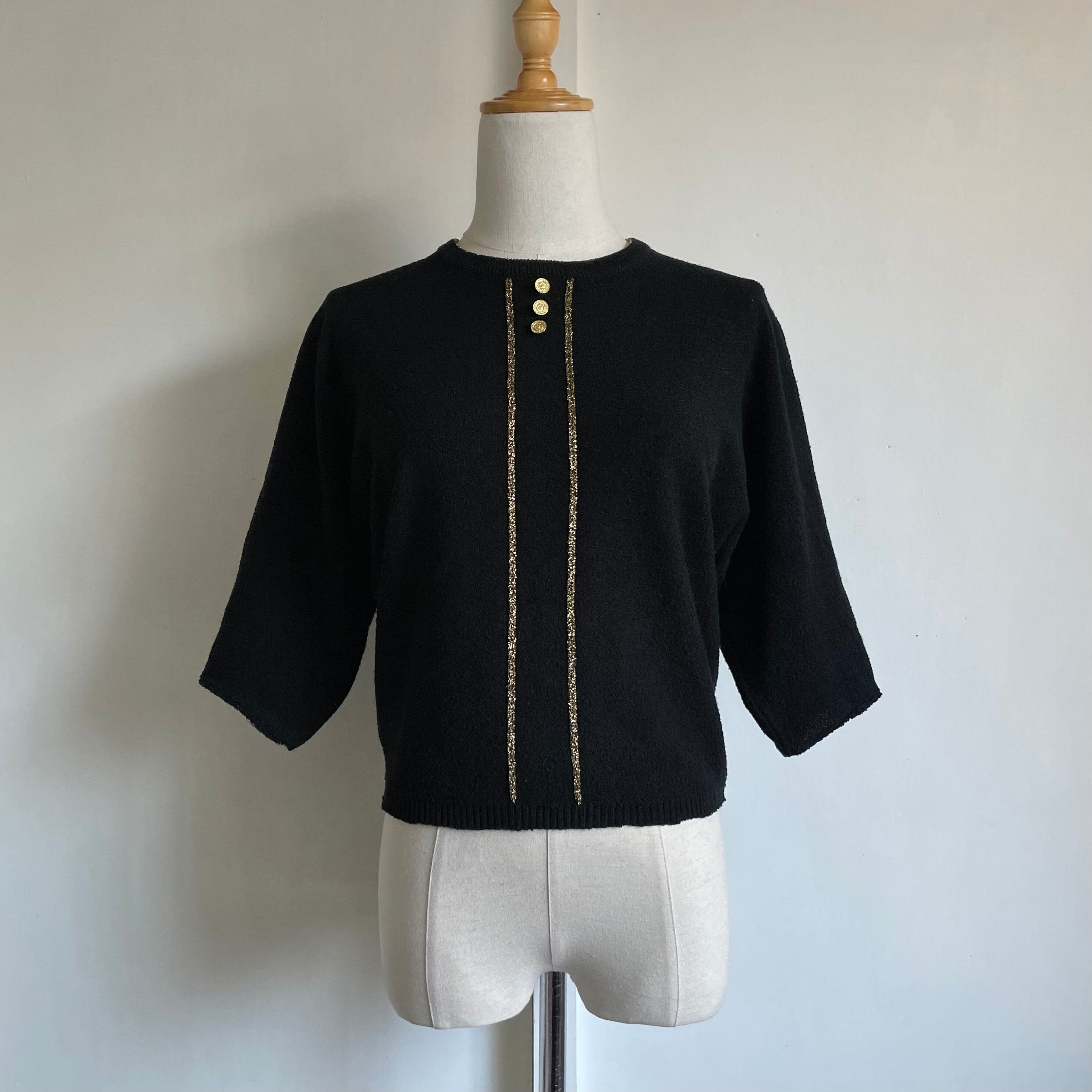 gold line design black summer knit 〈レトロ古着 ゴールドラインデザイン ブラック サマーニット 黒〉