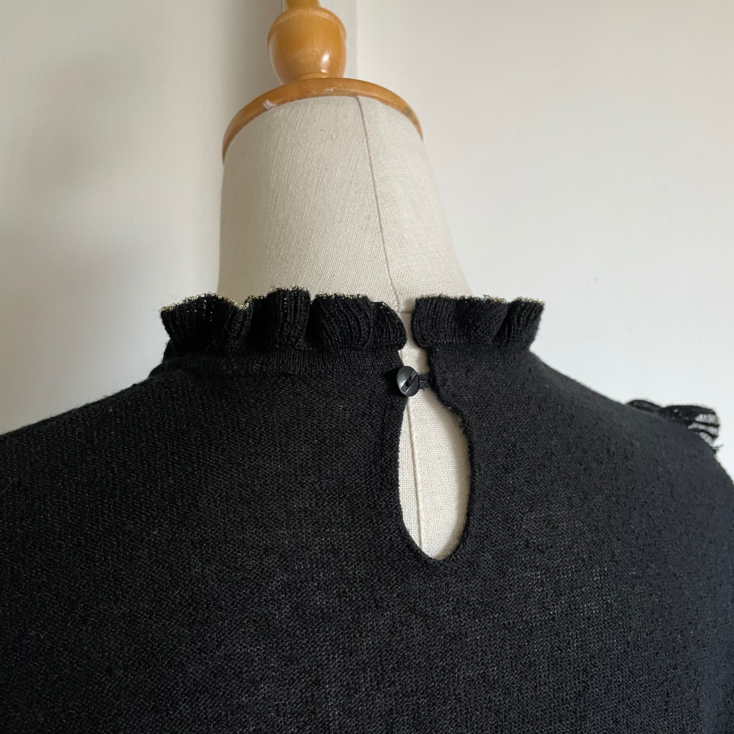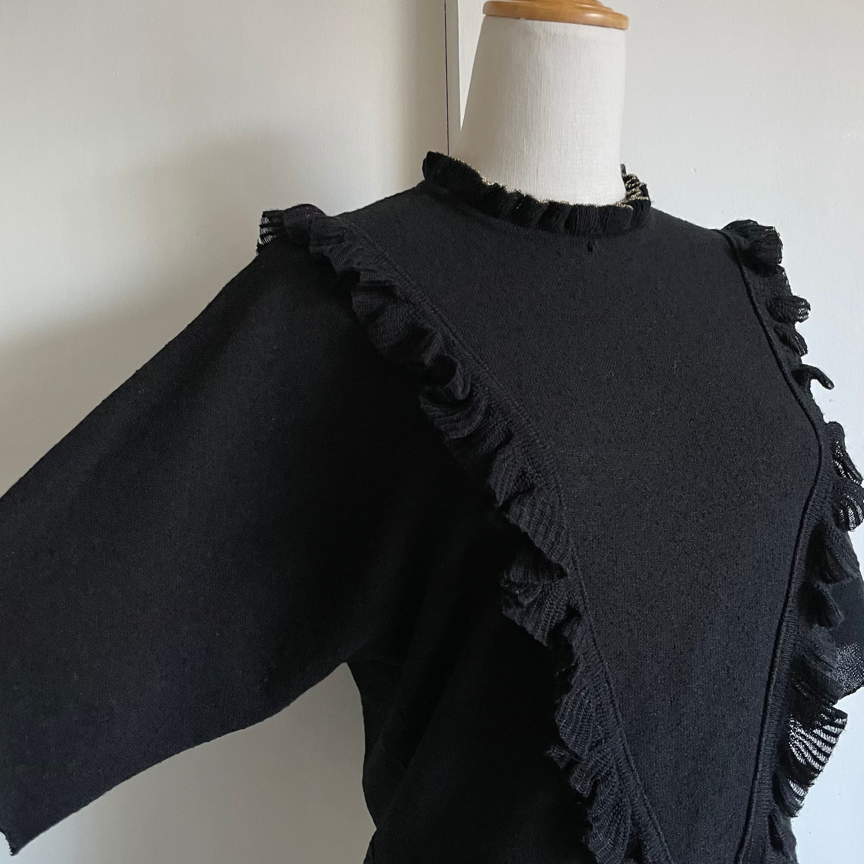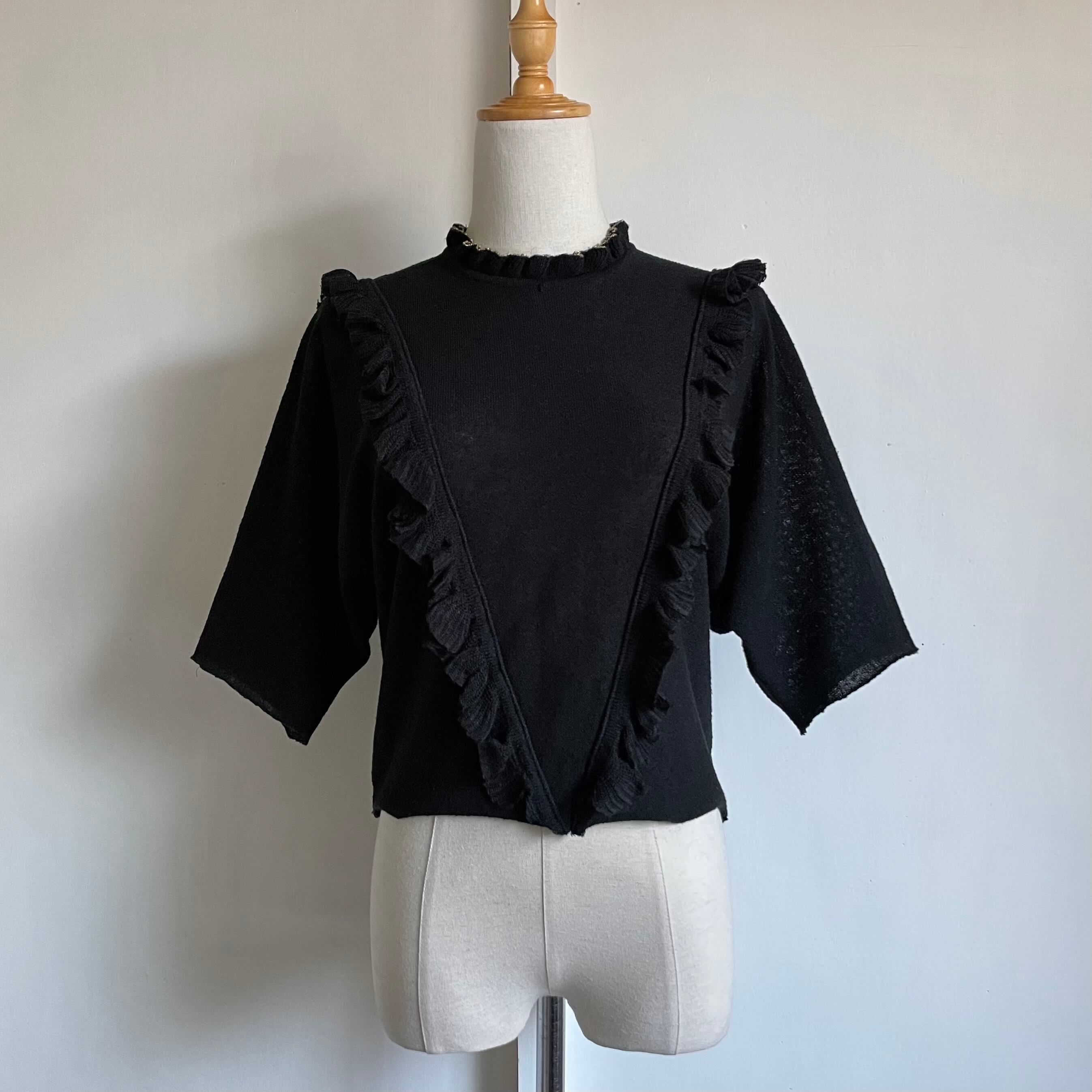 frill black summer knit 〈レトロ古着 フリル ブラック サマーニット 黒〉