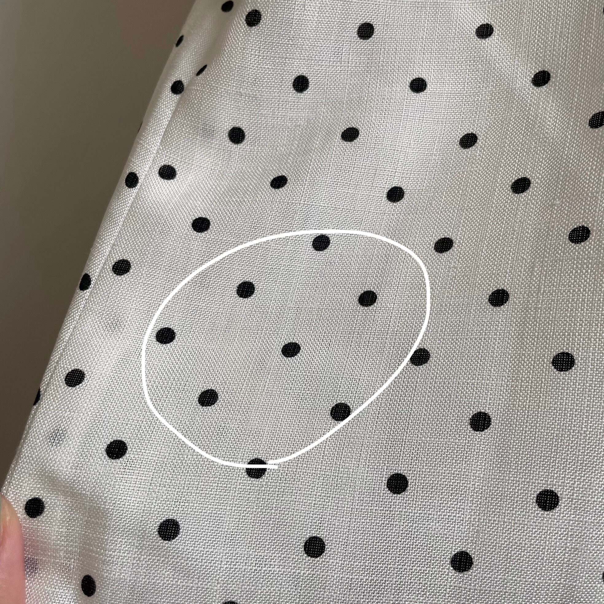 こちらは白地にブラックのピンドットが柔らかな雰囲気の一着