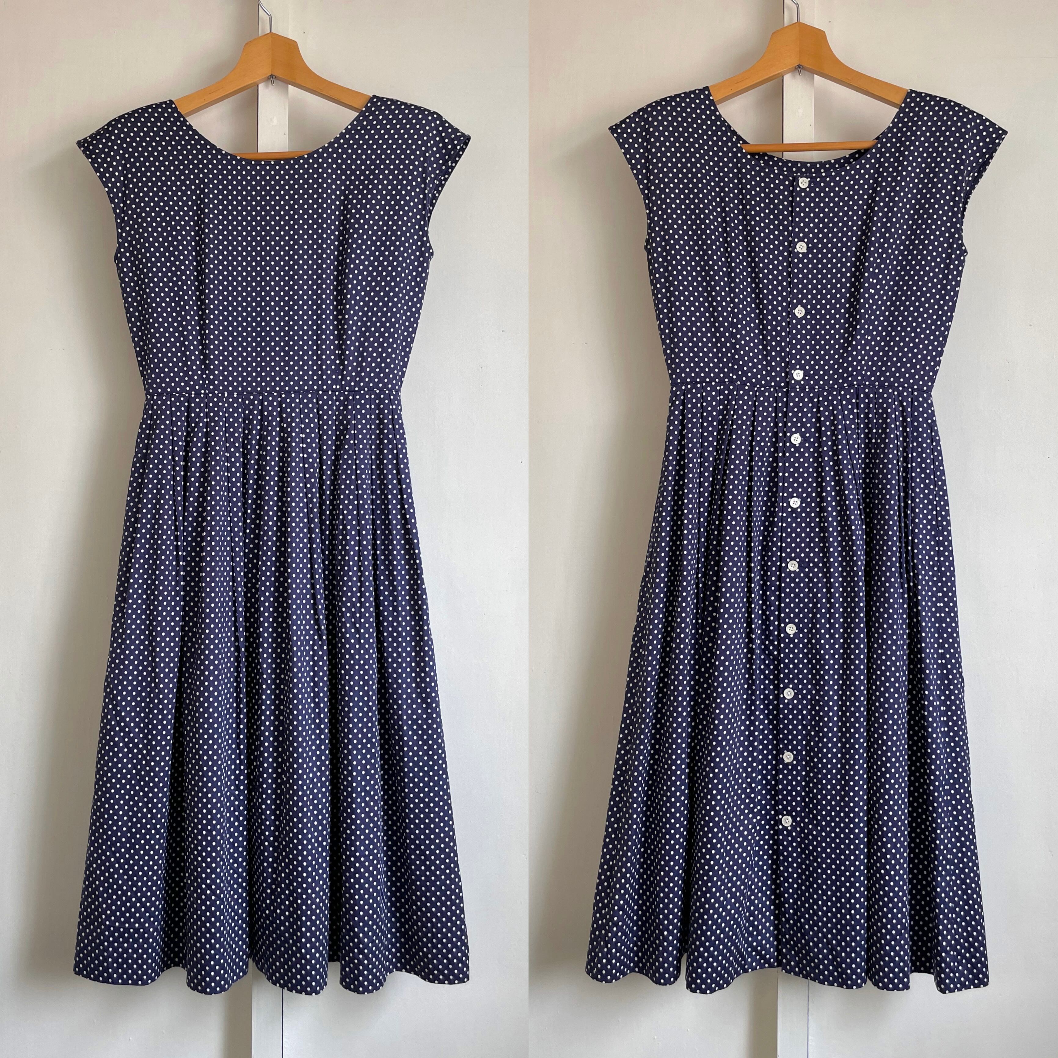 french sleeve pin dot dress〈レトロ古着 フレンチスリーブ ピンドット ワンピース 水玉 日本製〉