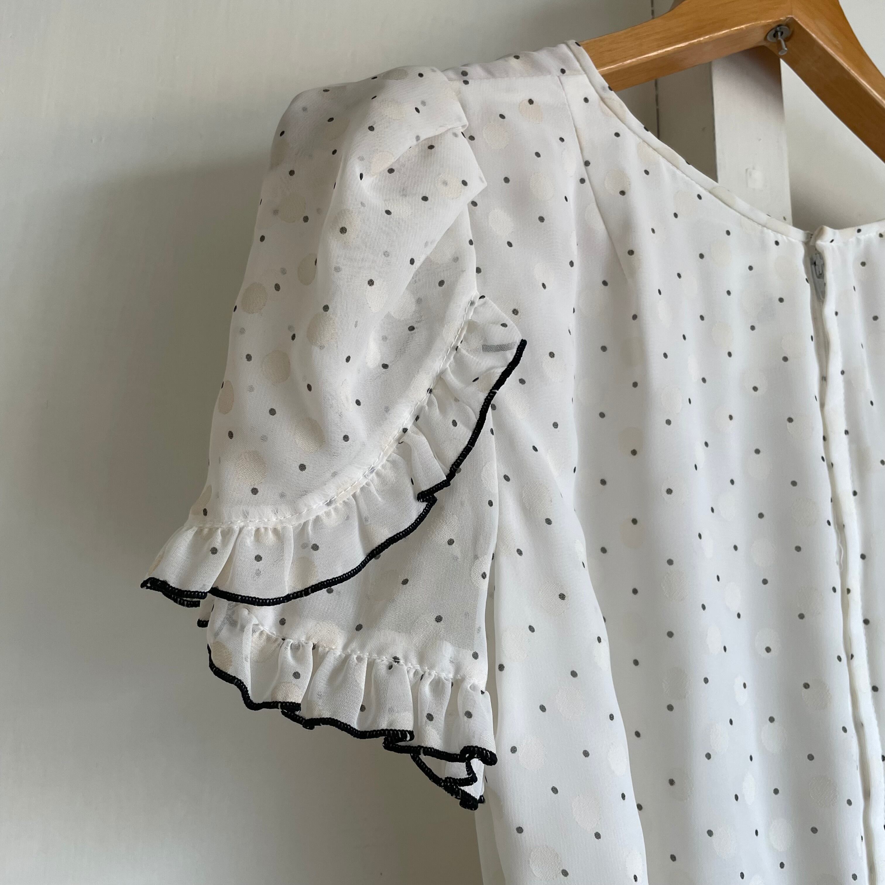 tulip sleeve pin dot frill dress〈レトロ古着 チューリップスリーブ ピンドット フリルワンピース 水玉 日本製〉