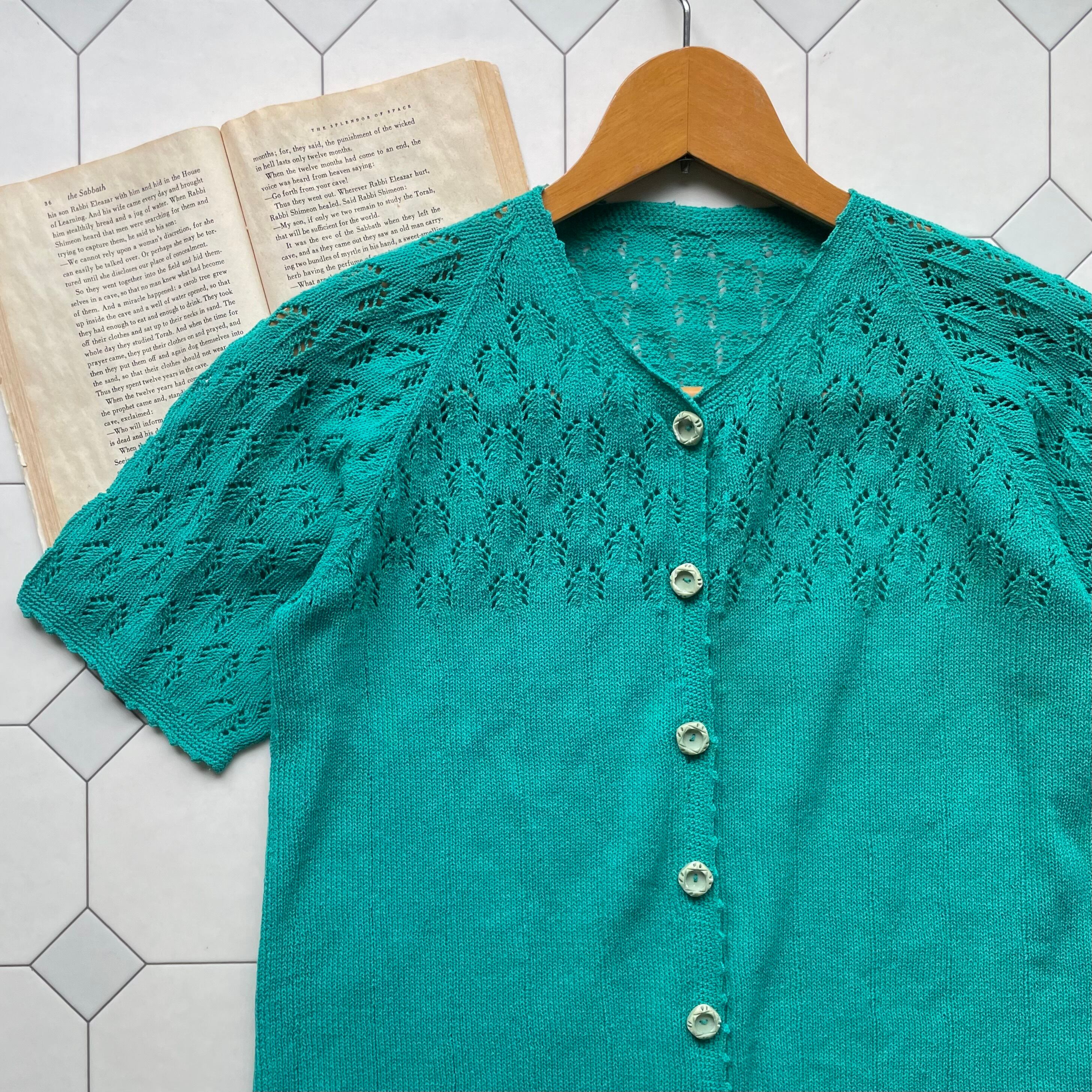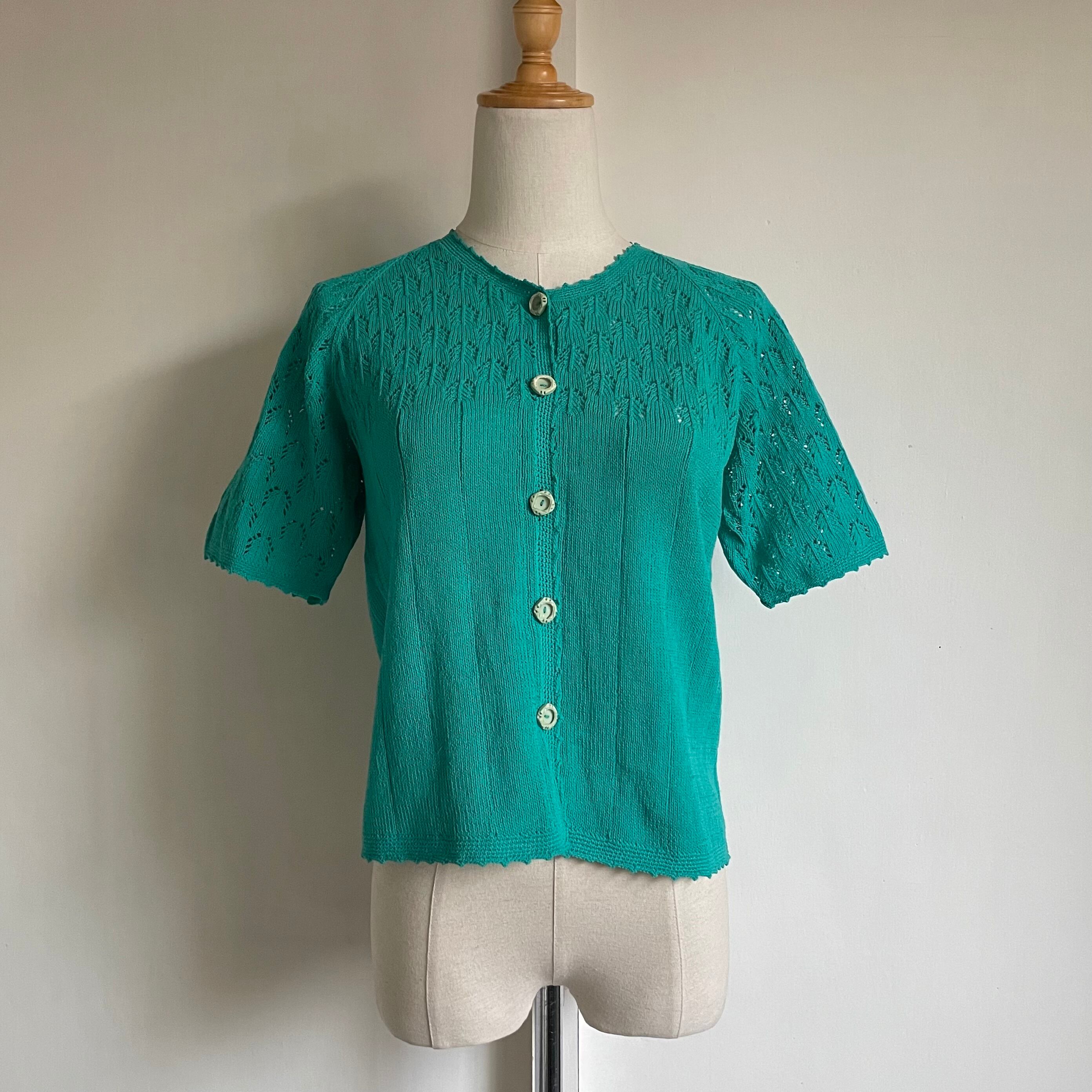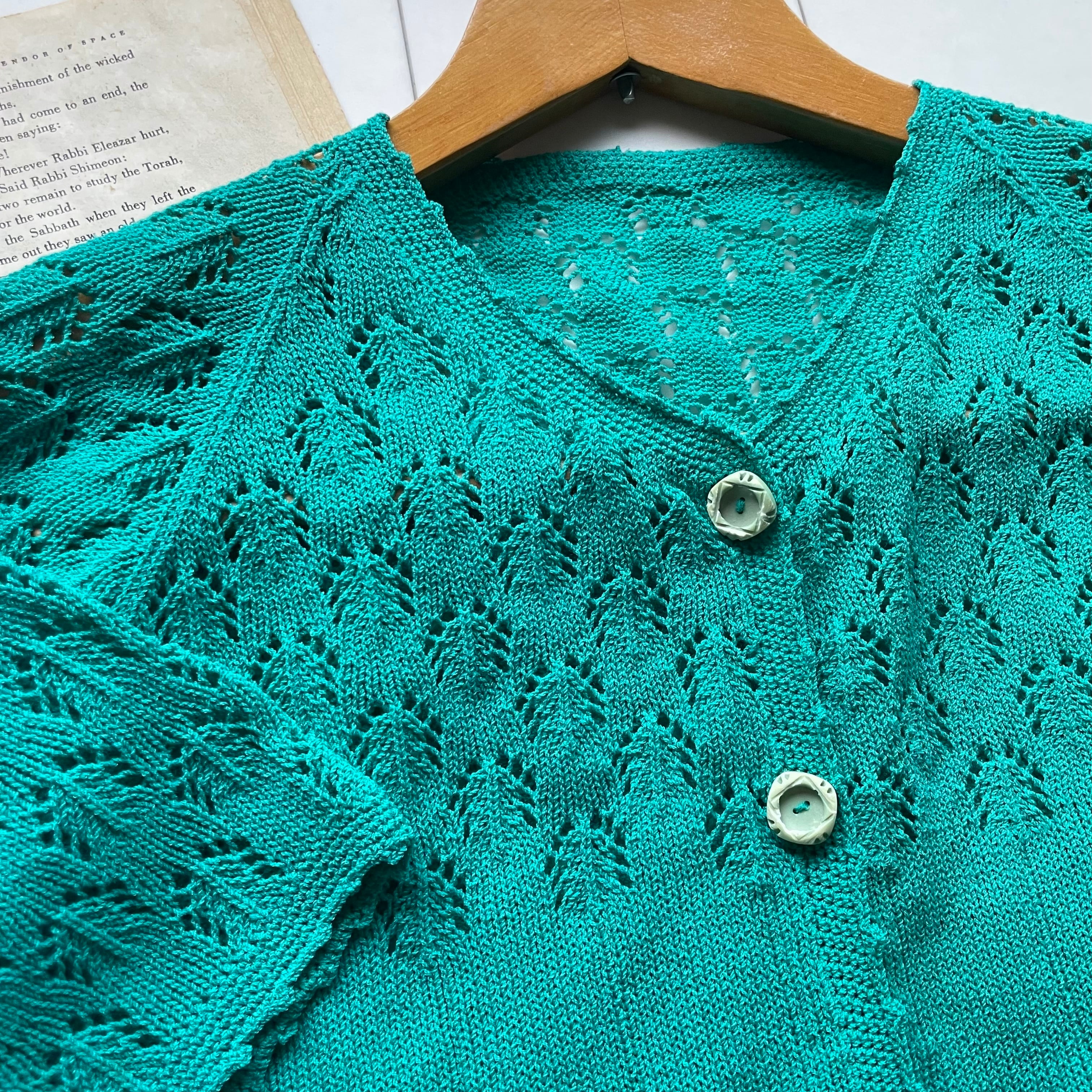 mint green summer knit cardigan 〈レトロ古着 ミントグリーン サマーニット カーディガン〉