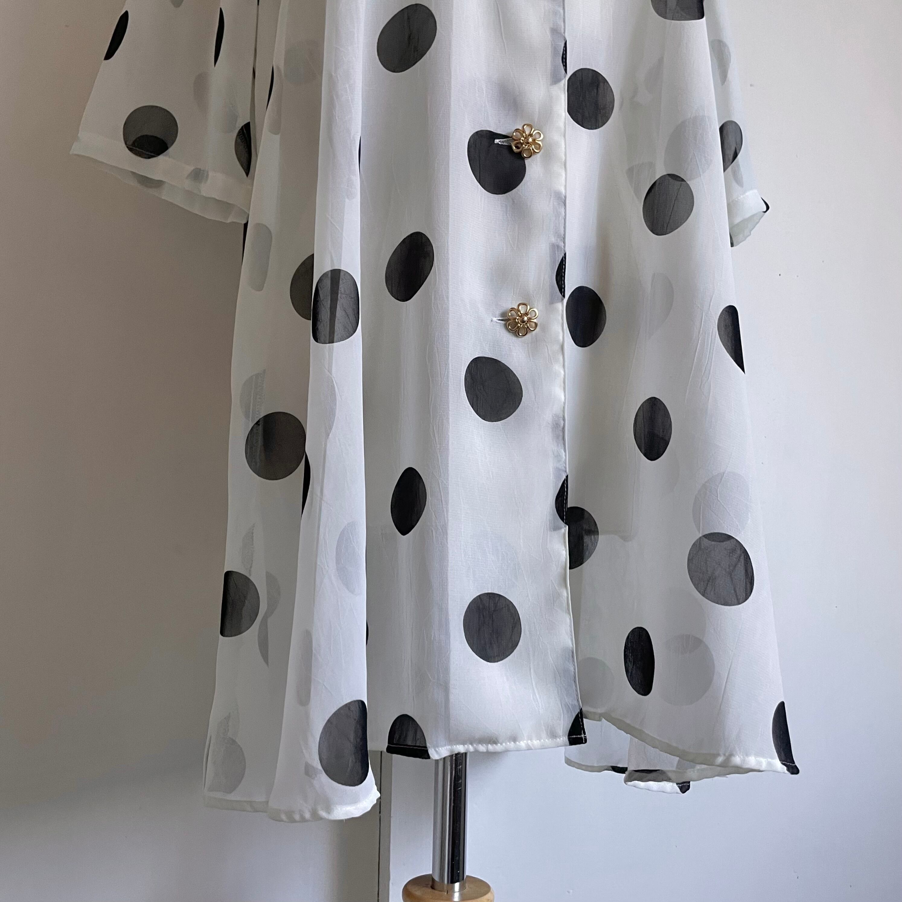 flower button coin dot sheer shirt 〈レトロ古着 フラワーボタン コインドット シアーシャツ〉
