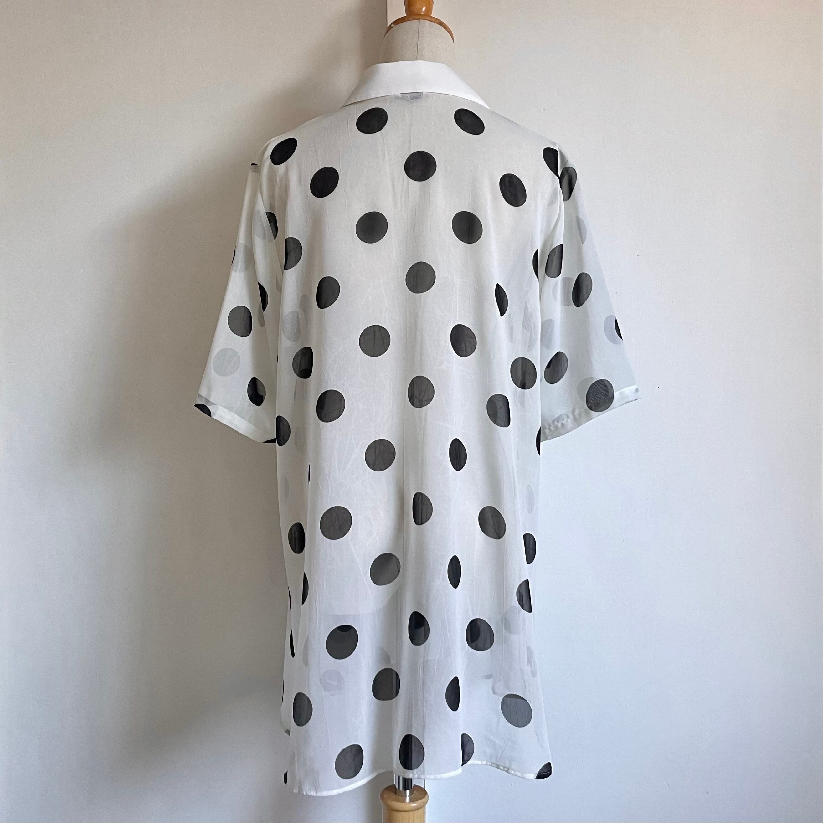 白地に大きなコインドットがポップで夏らしいシアーシャツ