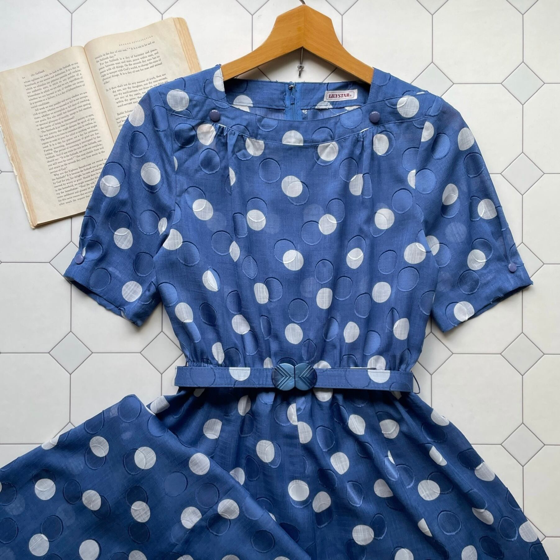coin dot jacquard square neck dress 〈レトロ古着 コインドット ジャガード スクエアネック ワンピース〉