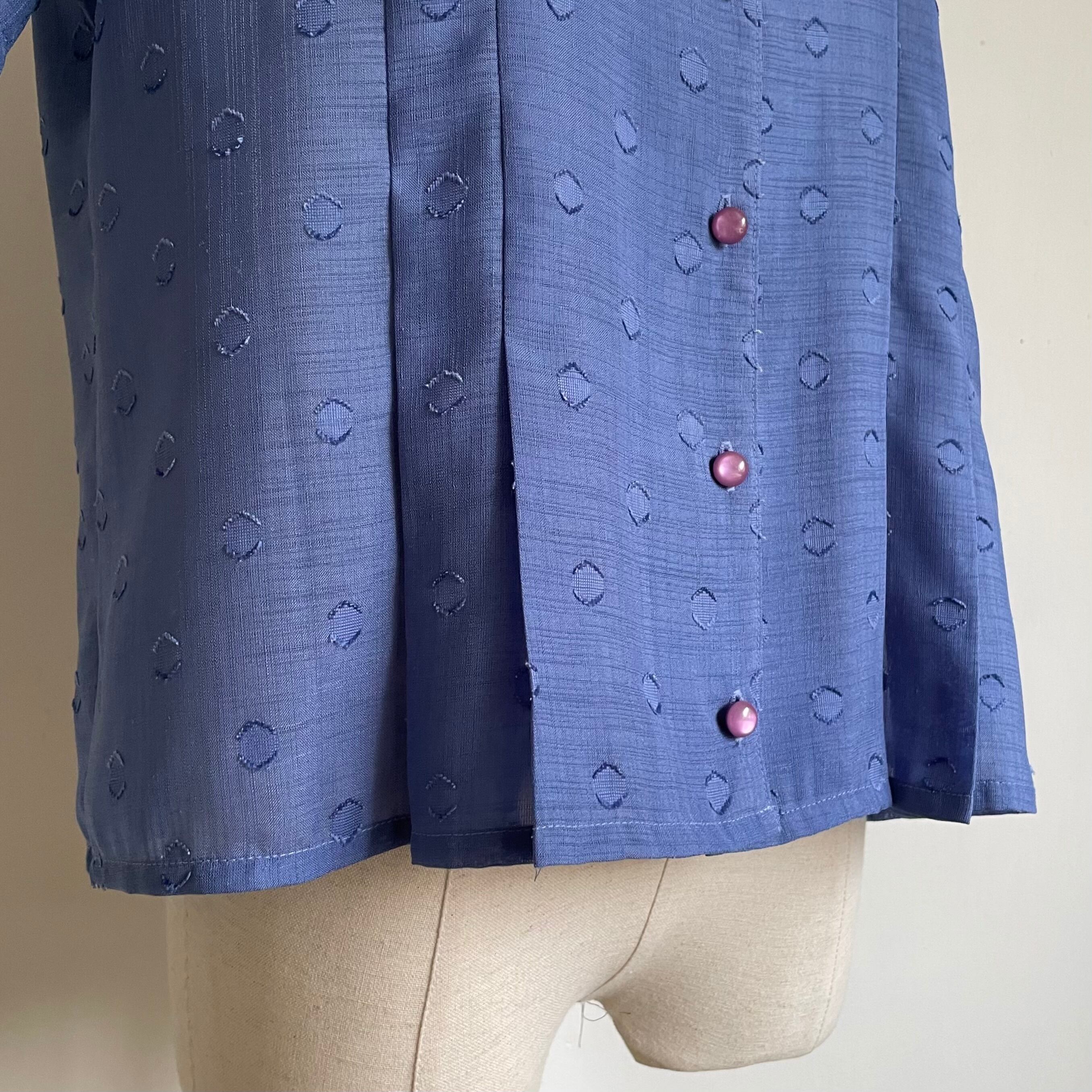 dot jacquard open collar blouse 〈レトロ古着 ドット ジャガード オープンカラー ブラウス 青〉