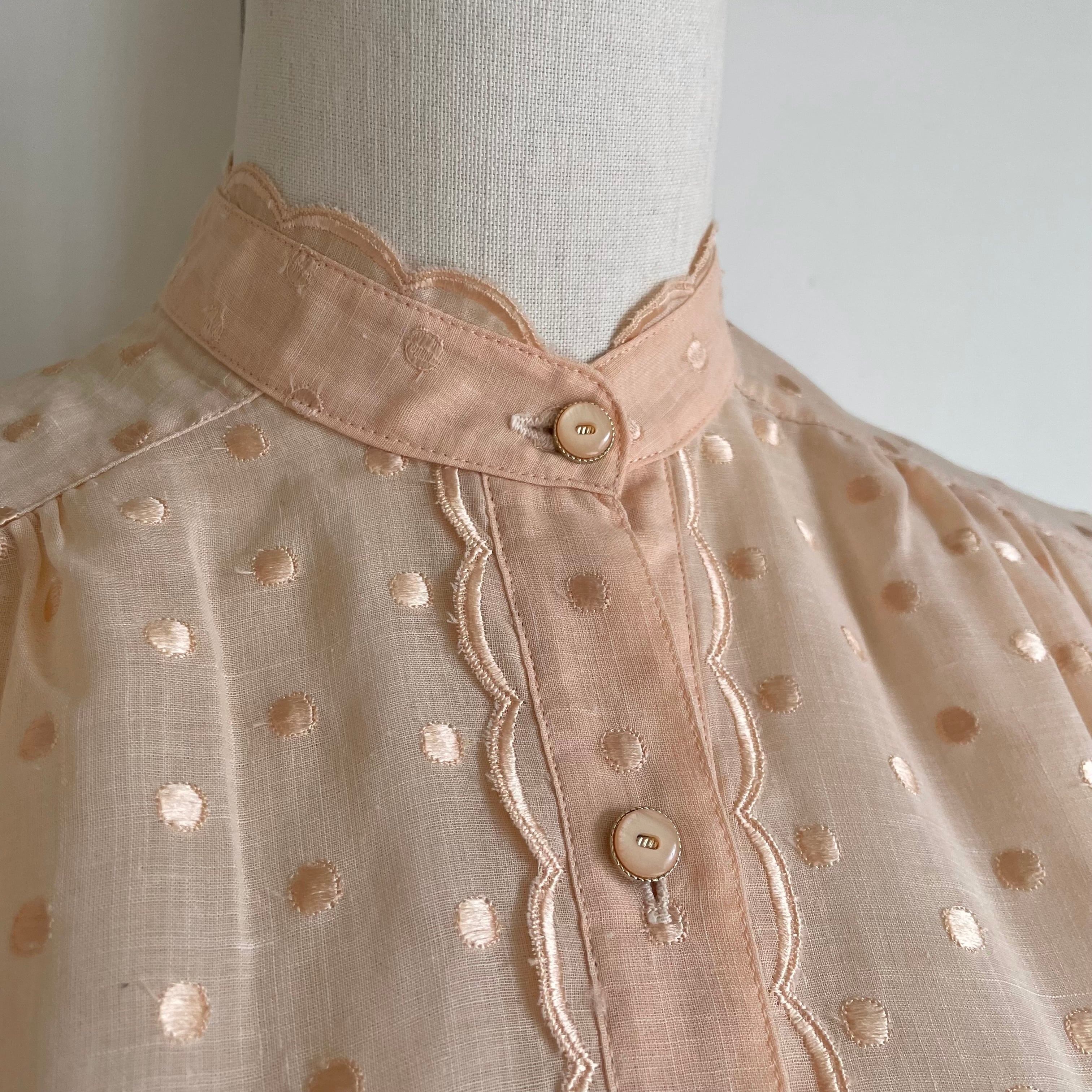 embroidered dot stand collar blouse 〈レトロ古着 刺繍ドット スタンドカラー ブラウス〉
