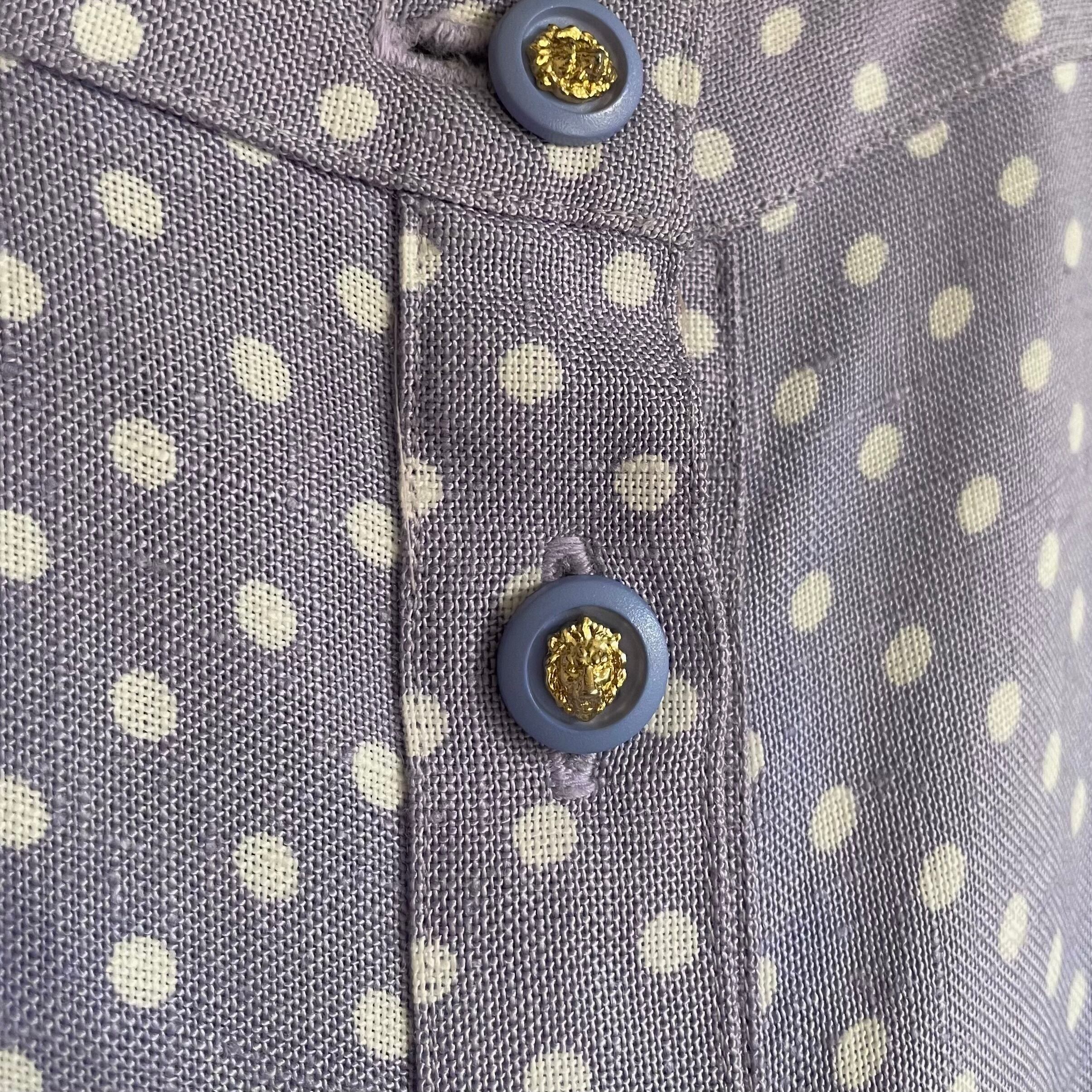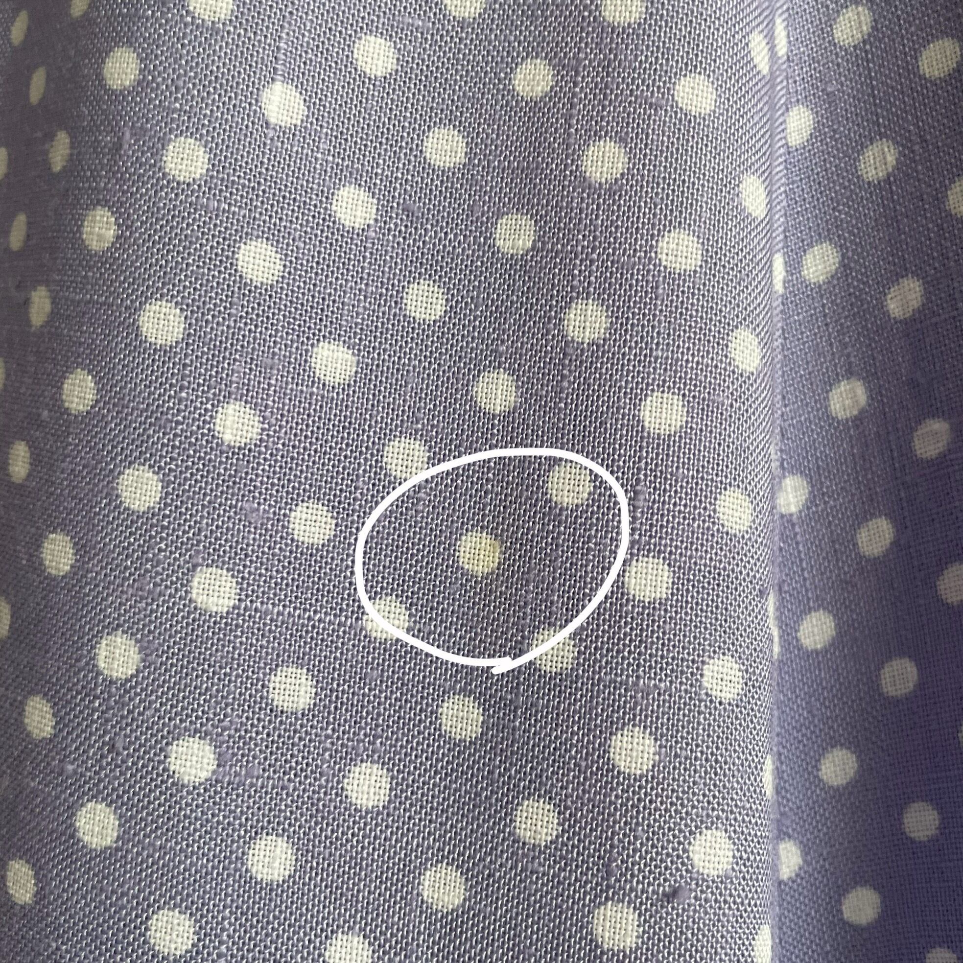 こちらは淡いラベンダーにホワイトのドット柄が愛らしい一着