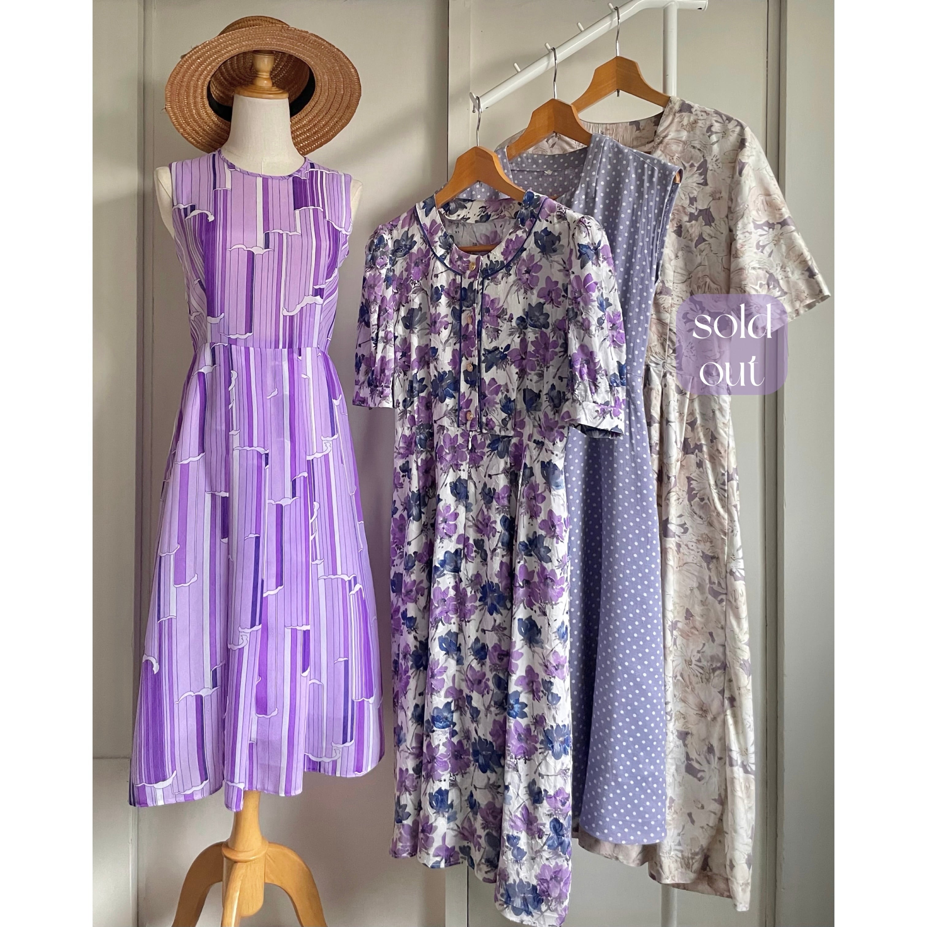 lavender dot french sleeve dress〈レトロ古着 ラベンダー ドット フレンチスリーブ ワンピース 紫〉