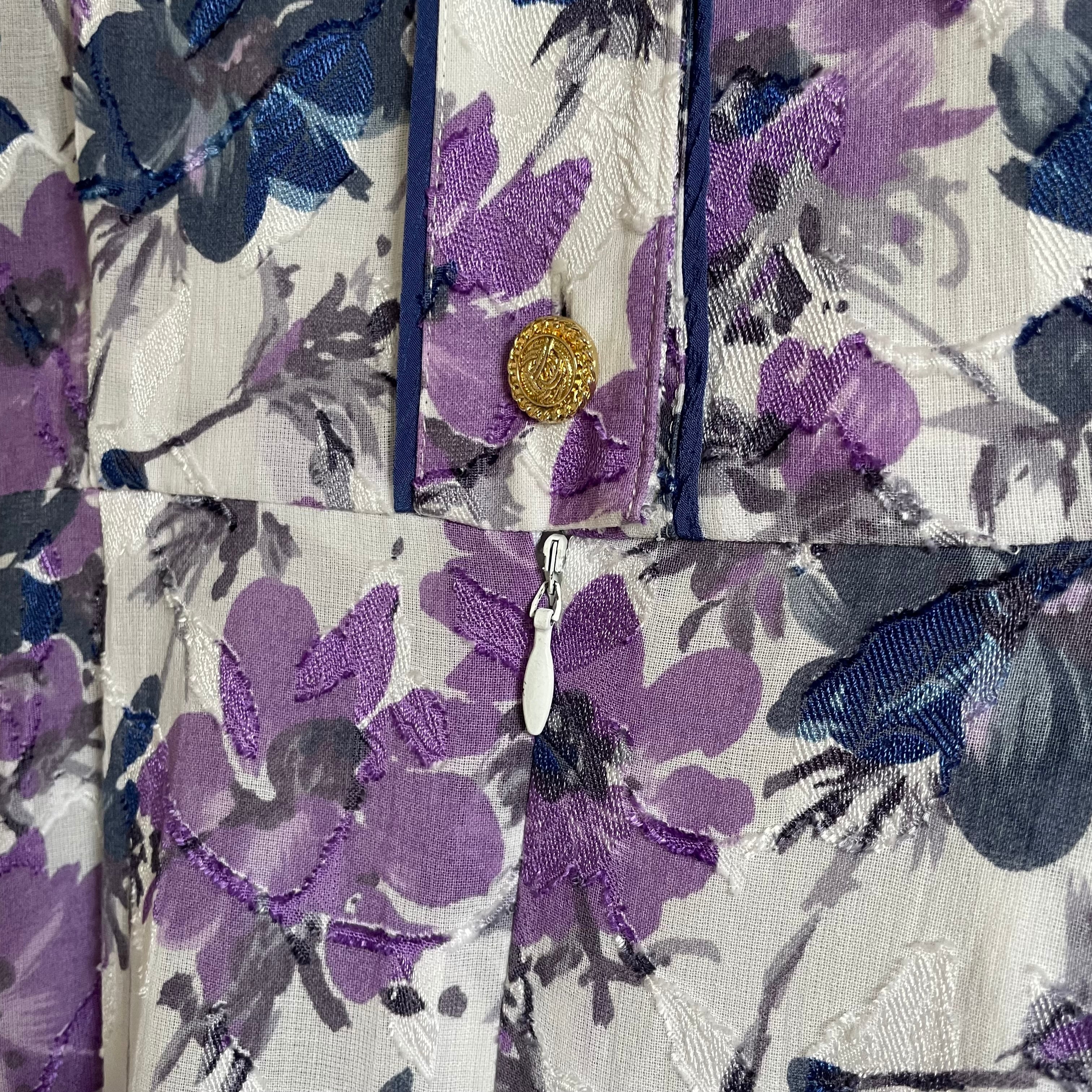 flower jacquard piping dress〈レトロ古着 フラワー ジャガード パイピング ワンピース 紫〉