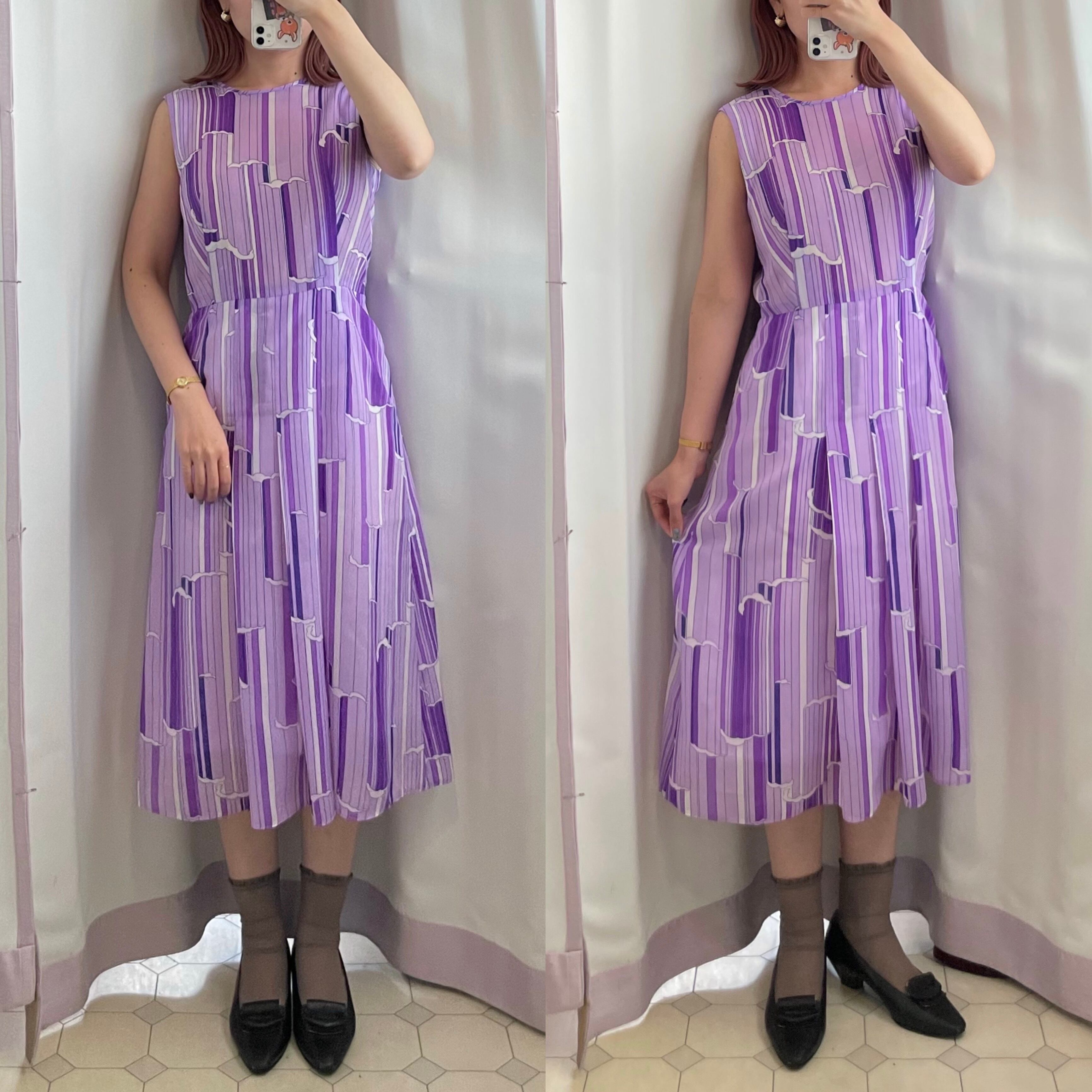 purple multi-stripe sleeveless dress〈レトロ古着 パープル マルチストライプ柄 ノースリーブ ワンピース 紫〉