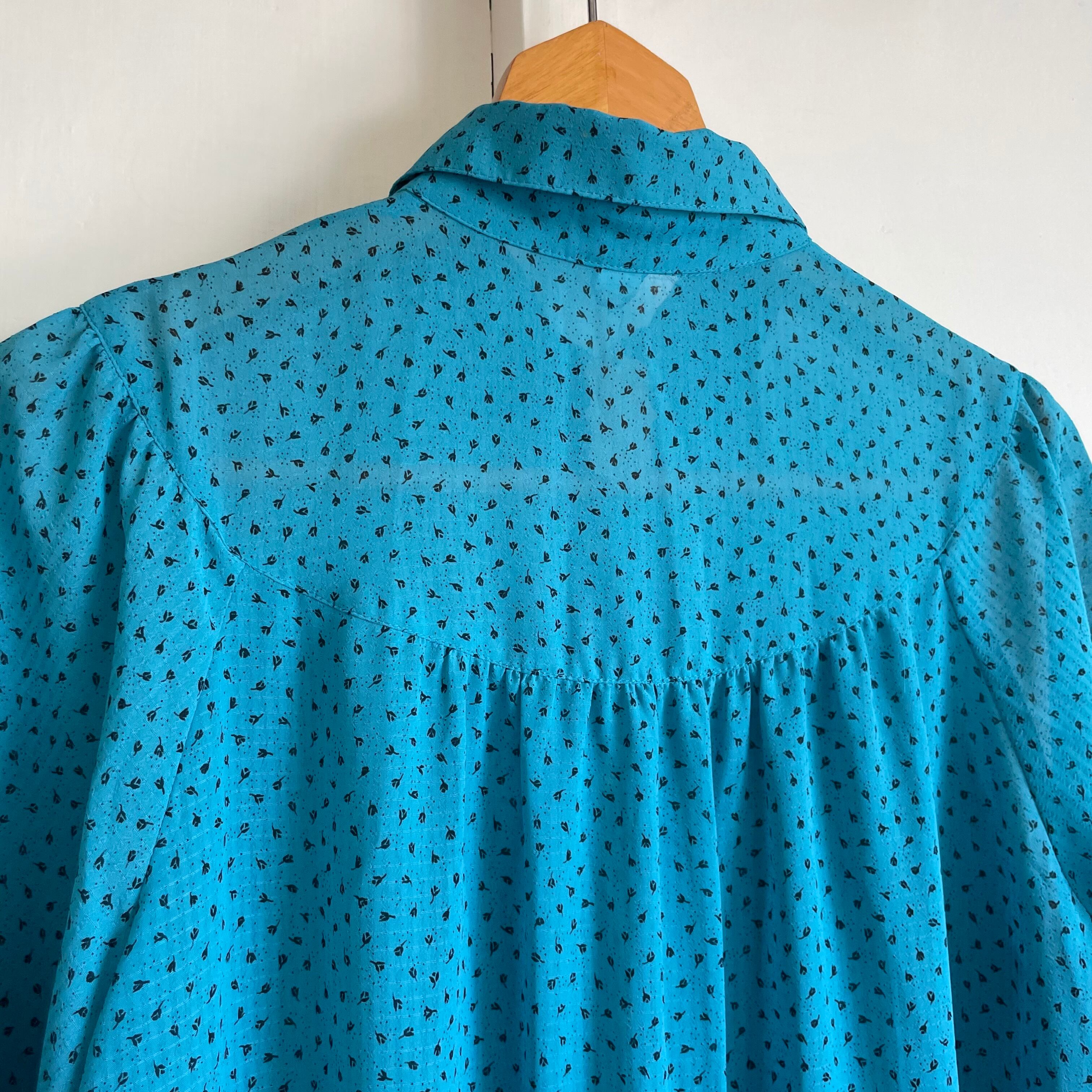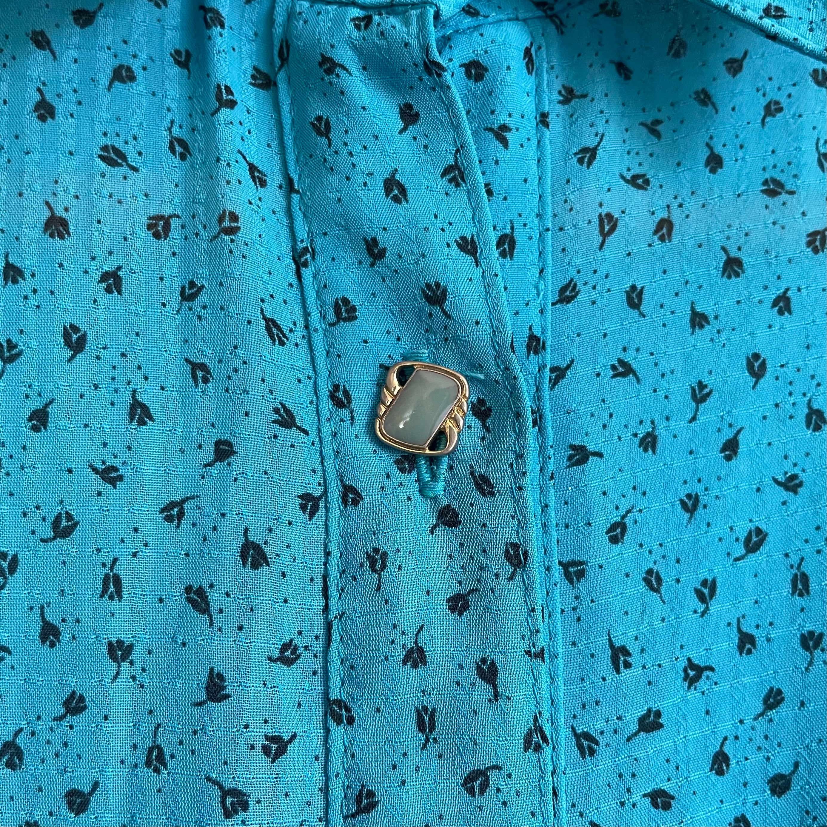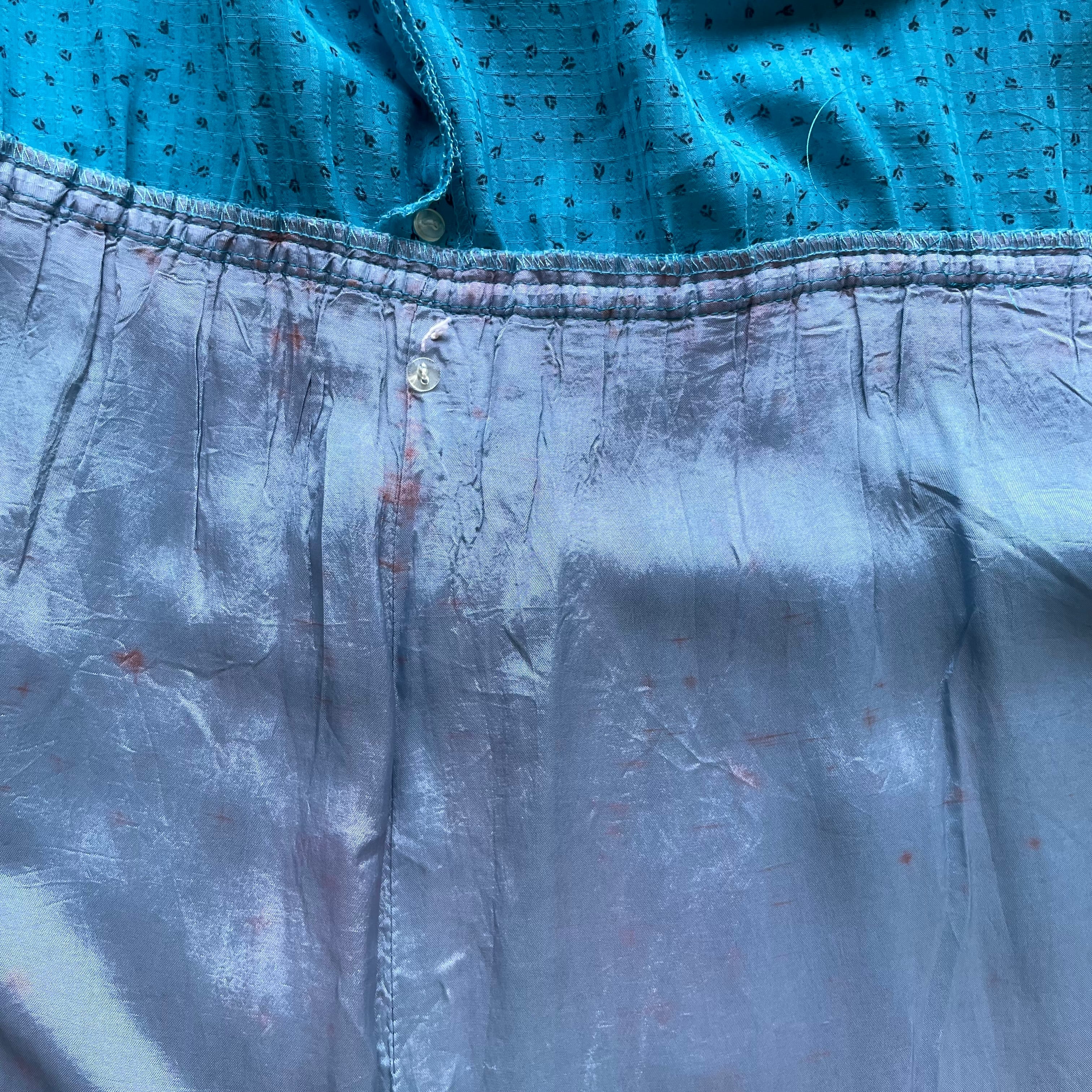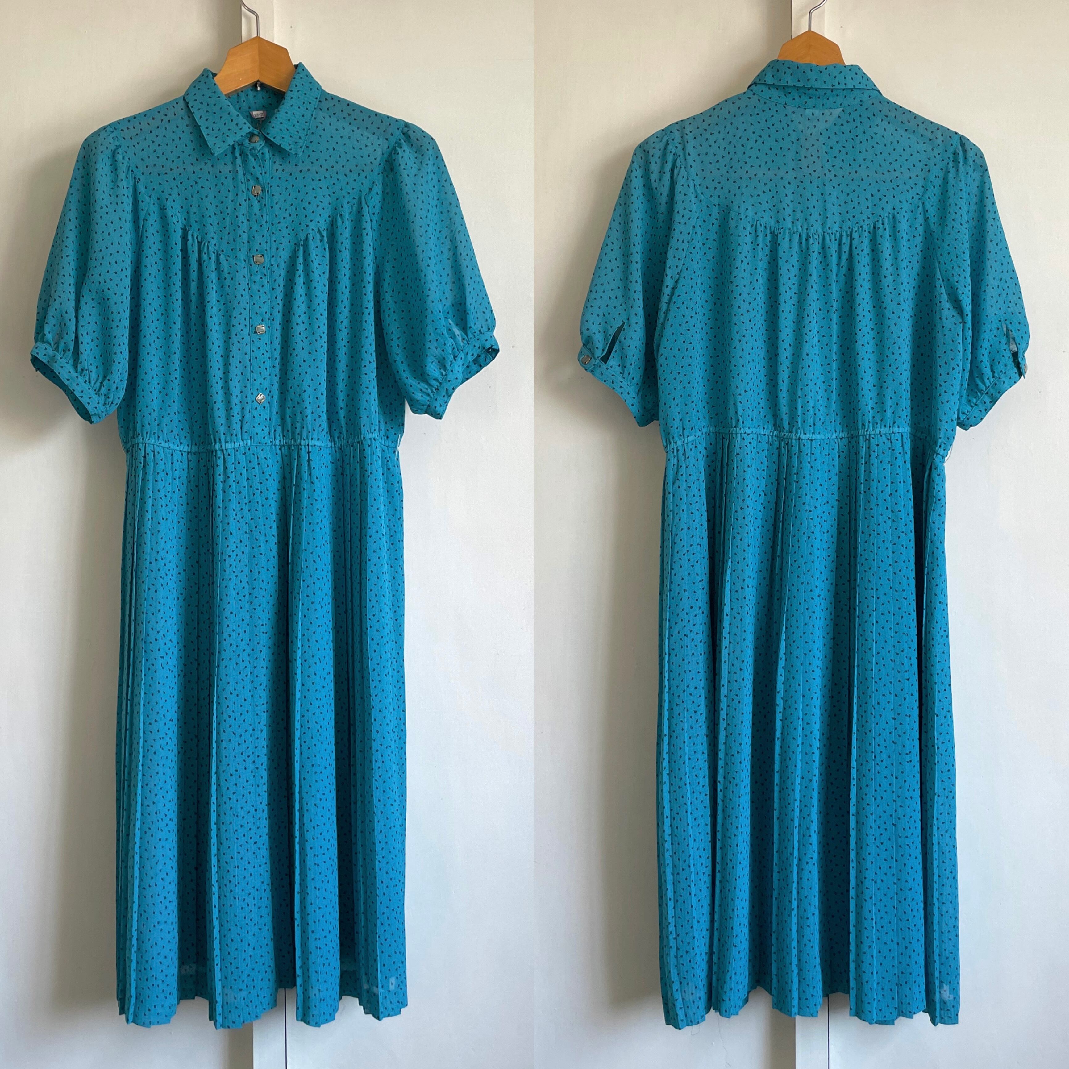 bud pattern yoke pleated dress〈レトロ古着 つぼみ柄 ヨーク切替え プリーツワンピース 日本製 青〉
