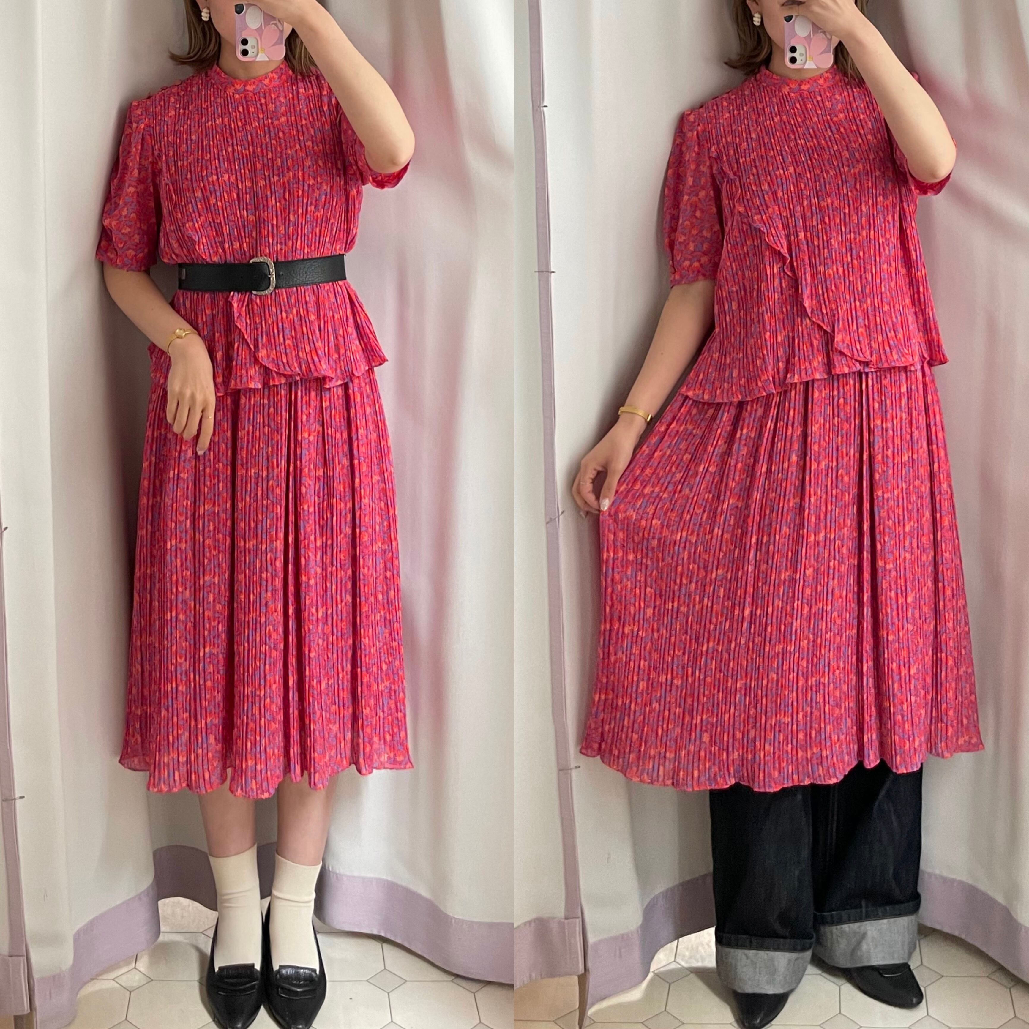Summer Bag - tulip print pleated layered dress -【レトロ古着 福袋】