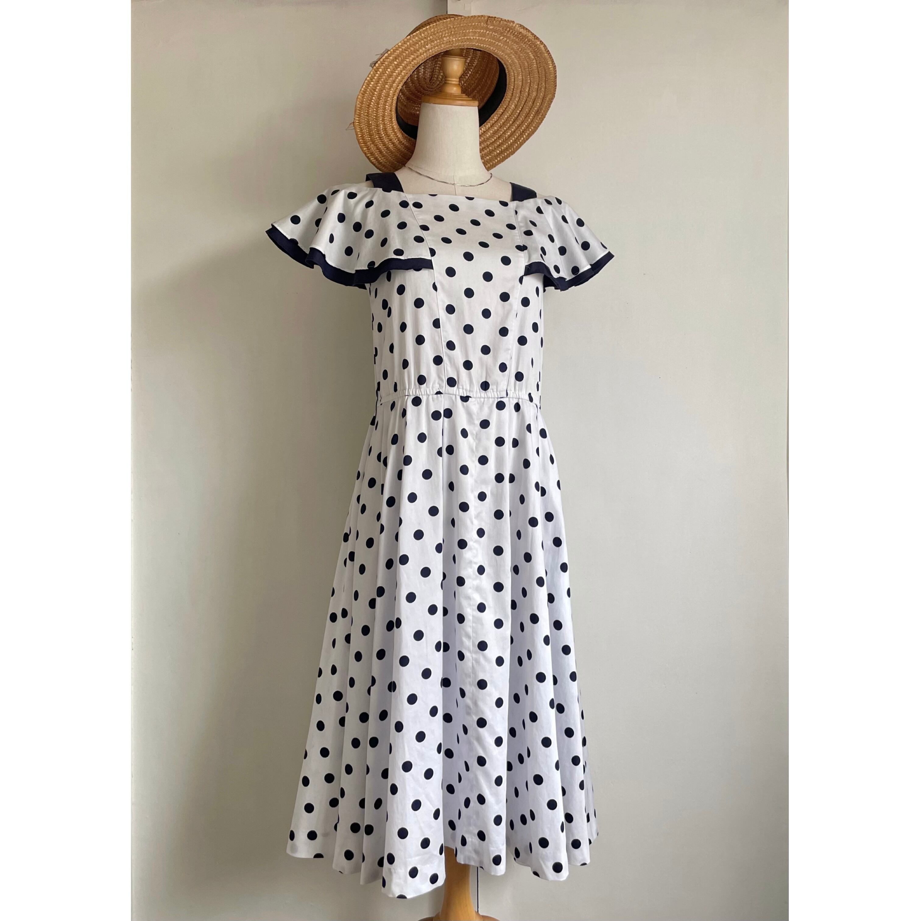 Summer Bag - off shoulder navy coin dot dress -【レトロ古着 福袋】