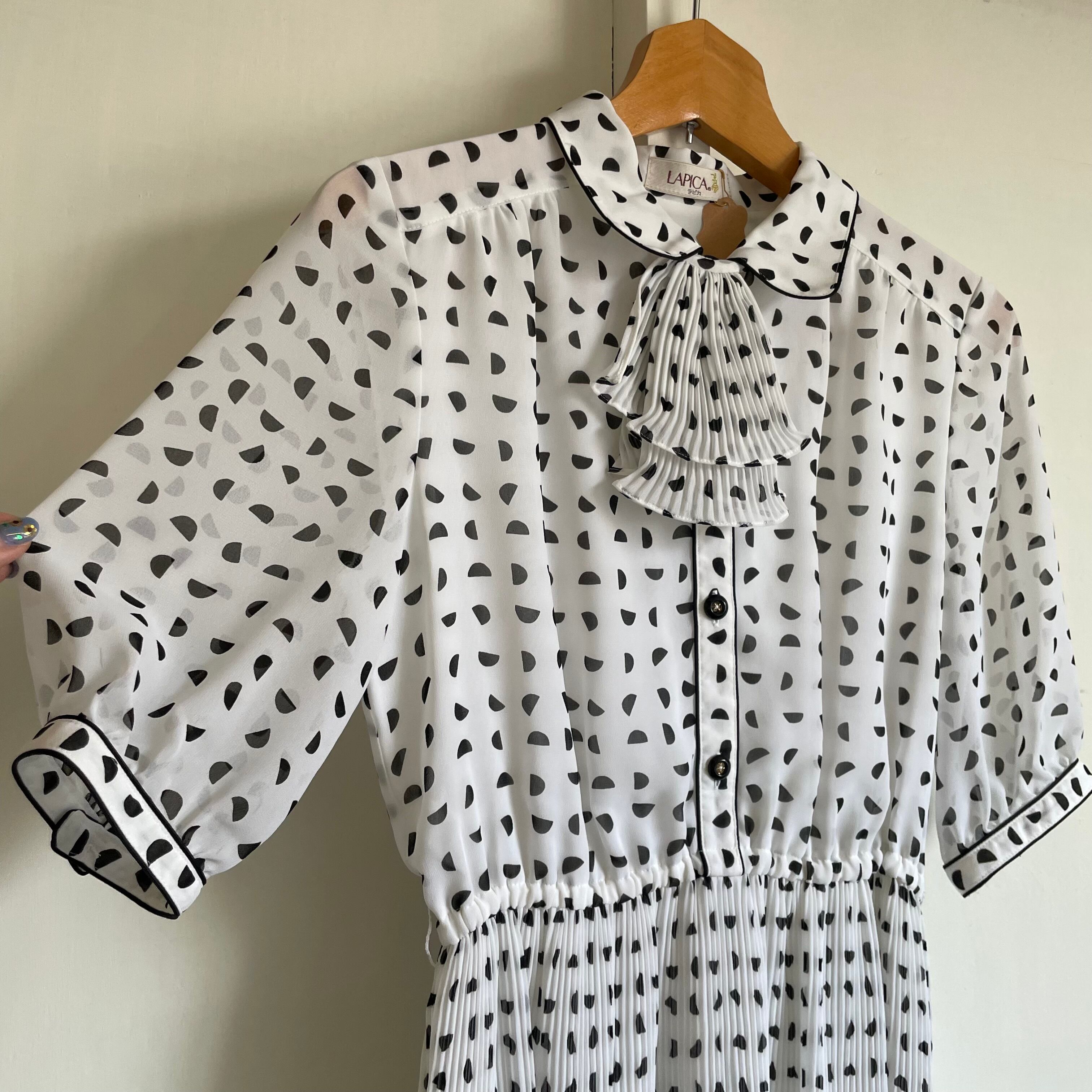 semicircle pattern 2way pleated dress〈レトロ古着 半円柄 2way プリーツワンピース〉