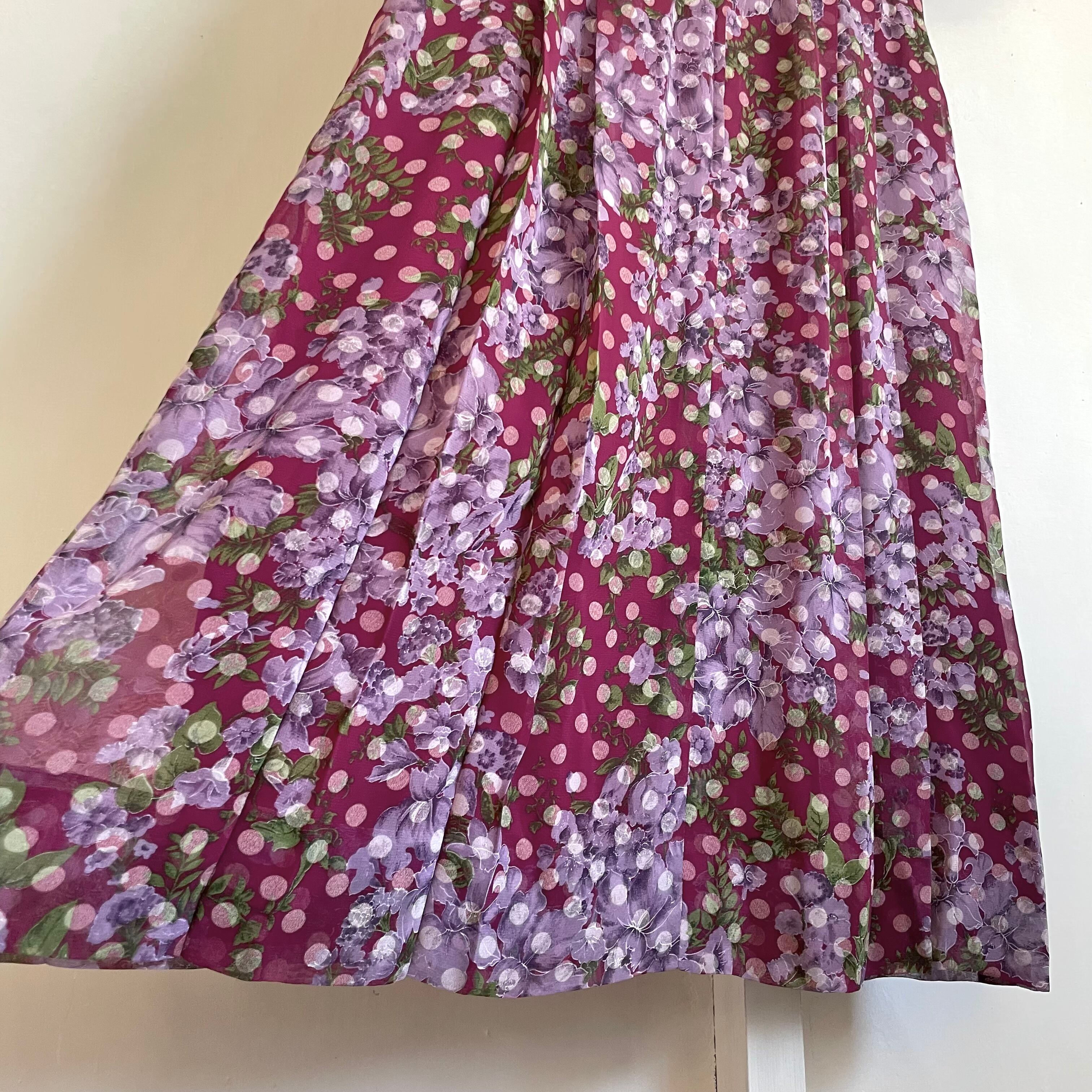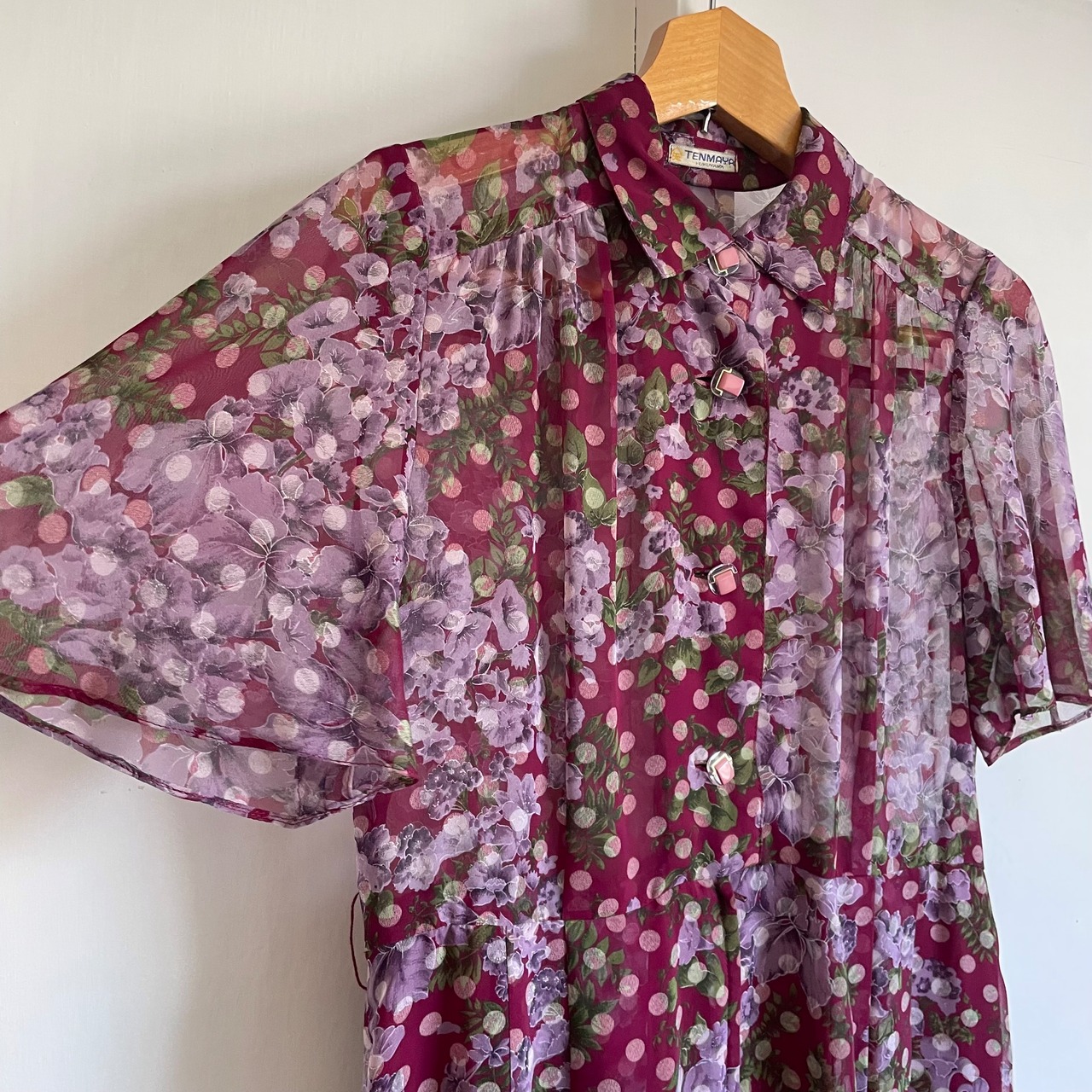 flower ×dot flared sleeve dress〈レトロ古着 花柄×ドット フレアスリーブ ワンピース 紫〉
