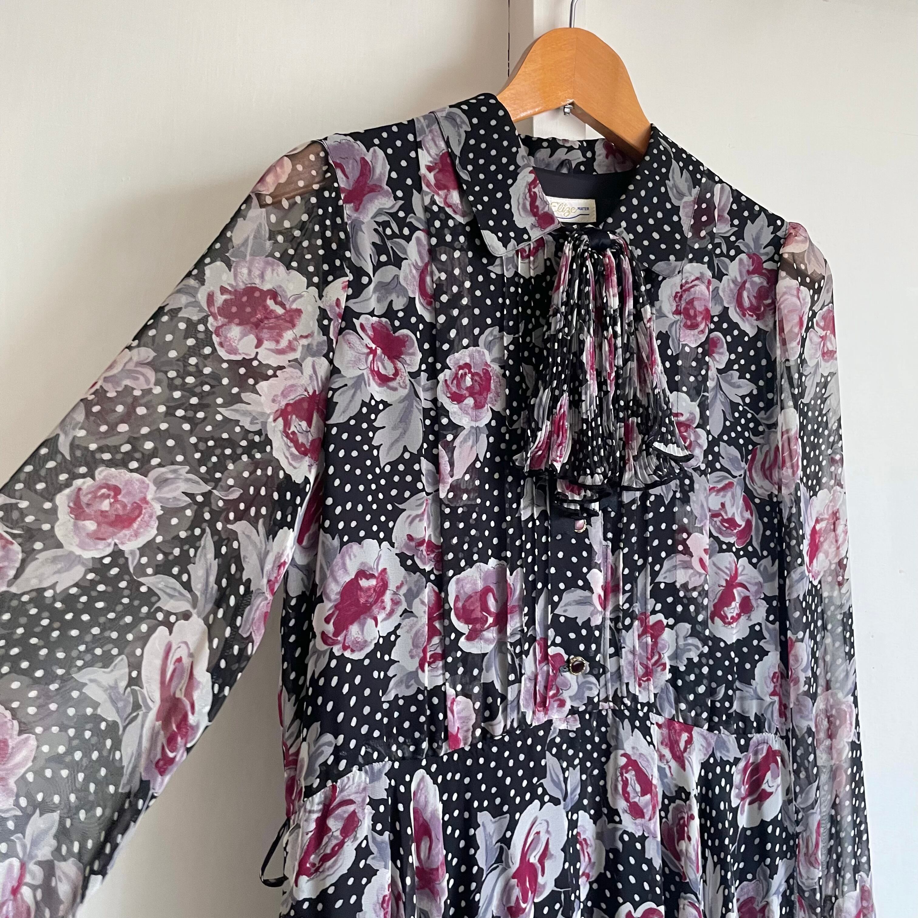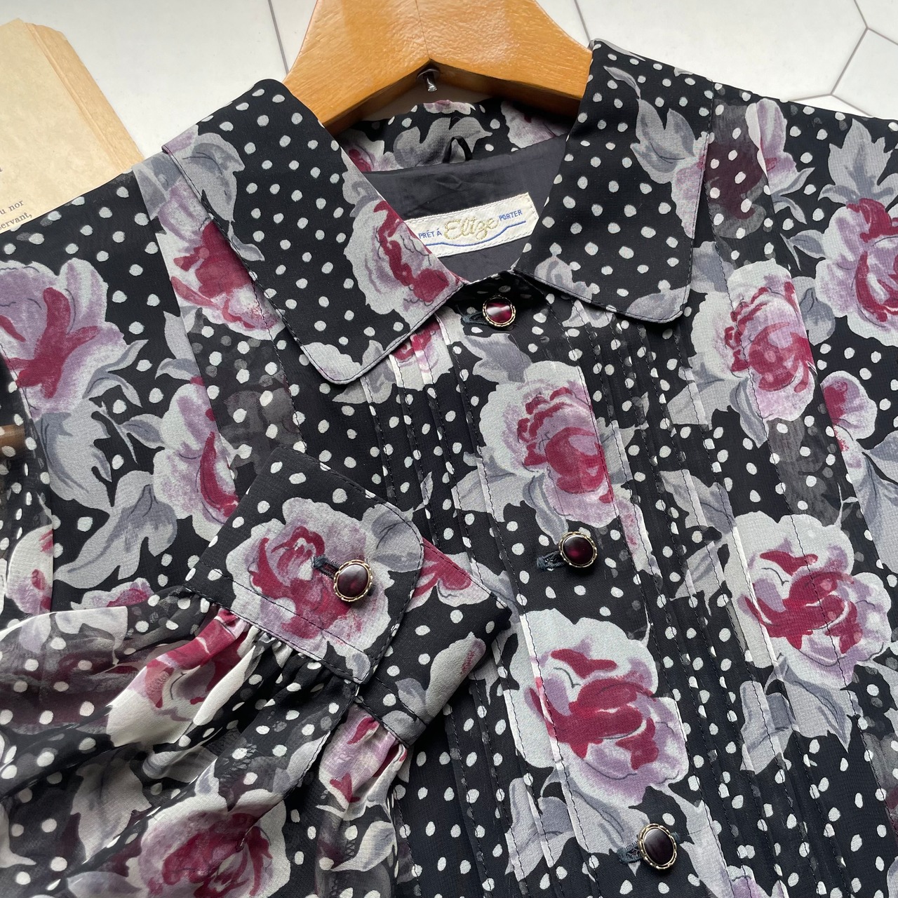 sheer sleeve rose pattern 2way dress〈シアースリーブ 薔薇柄 2way ワンピース レトロ古着 ジャパンヴィンテージ〉