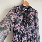 ブラック地にパープルやワインレッド系の薔薇柄のワンピース