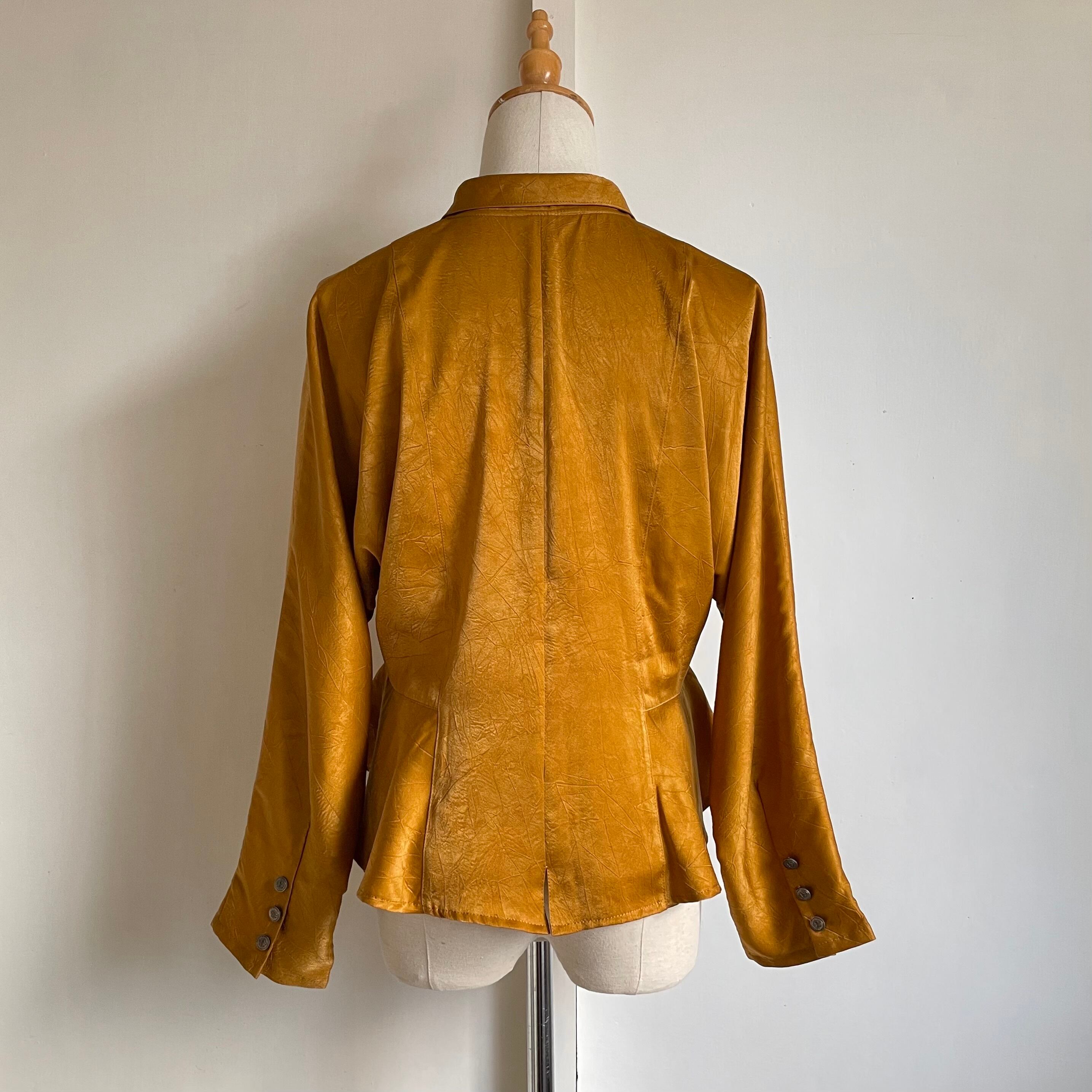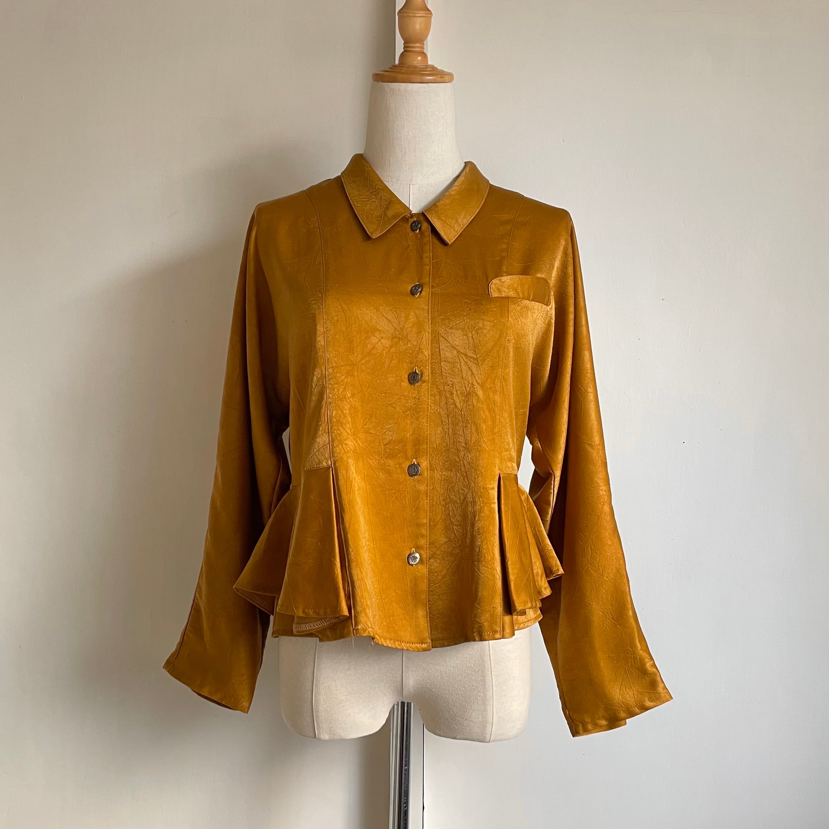 mustard yellow peplum blouse 〈レトロ古着 マスタードイエロー ペプラム ブラウス 日本製 ジャパンヴィンテージ〉